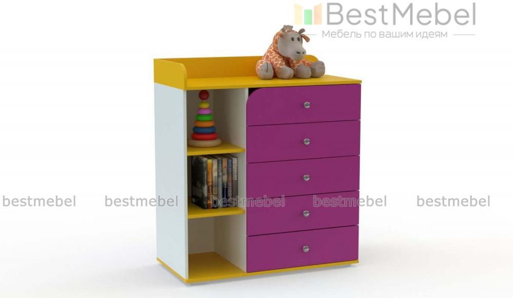 Пеленальный комод Арка 2 BMS с расположенными углом защитными бортиками позволит укладывать малыша вдоль задней стенки и боком к маме. Пять выдвижных ящиков, один из которых с полукруглым вырезом, и три открытые секции разместят все необходимые под рукой средства гигиены, пеленки, одежду и игрушки. Оригинальный дизайн в сочетании с широким выбором цветовых решений позволяет гармонично вписать комод в любую детскую. Купить пеленальный комод Арка 2 BMS по доступной цене приглашаем в наш интернет-магазин.