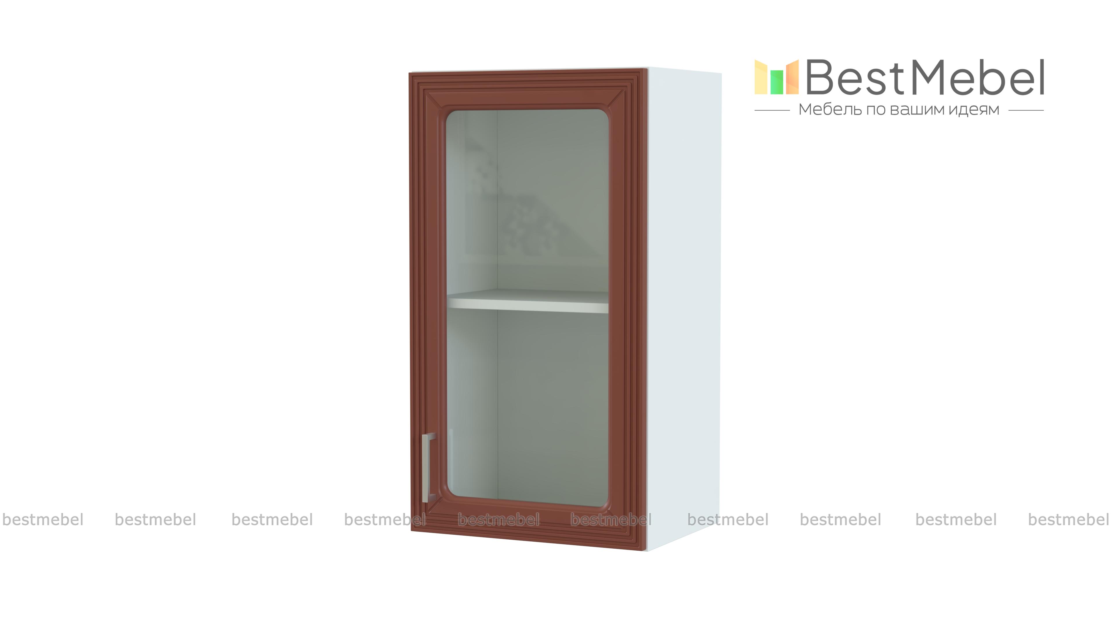 Шкаф навесной дверь со стеклом Ника BMS дополнит кухонный гарнитур удобной системой хранения и поможет созданию теплой, комфортной атмосферы в помещении. Компактная однодверная витрина оборудована распашным отделением с полкой и разместит посуду, упаковки с чаем и кофе, специи и декоративные предметы. Выполненный в классическом стиле, фасад украшен стеклом с рисунком и ручкой под бронзу. Купить шкаф навесной дверь со стеклом Ника BMS по привлекательной цене вы сможете в нашем интернет-магазине.