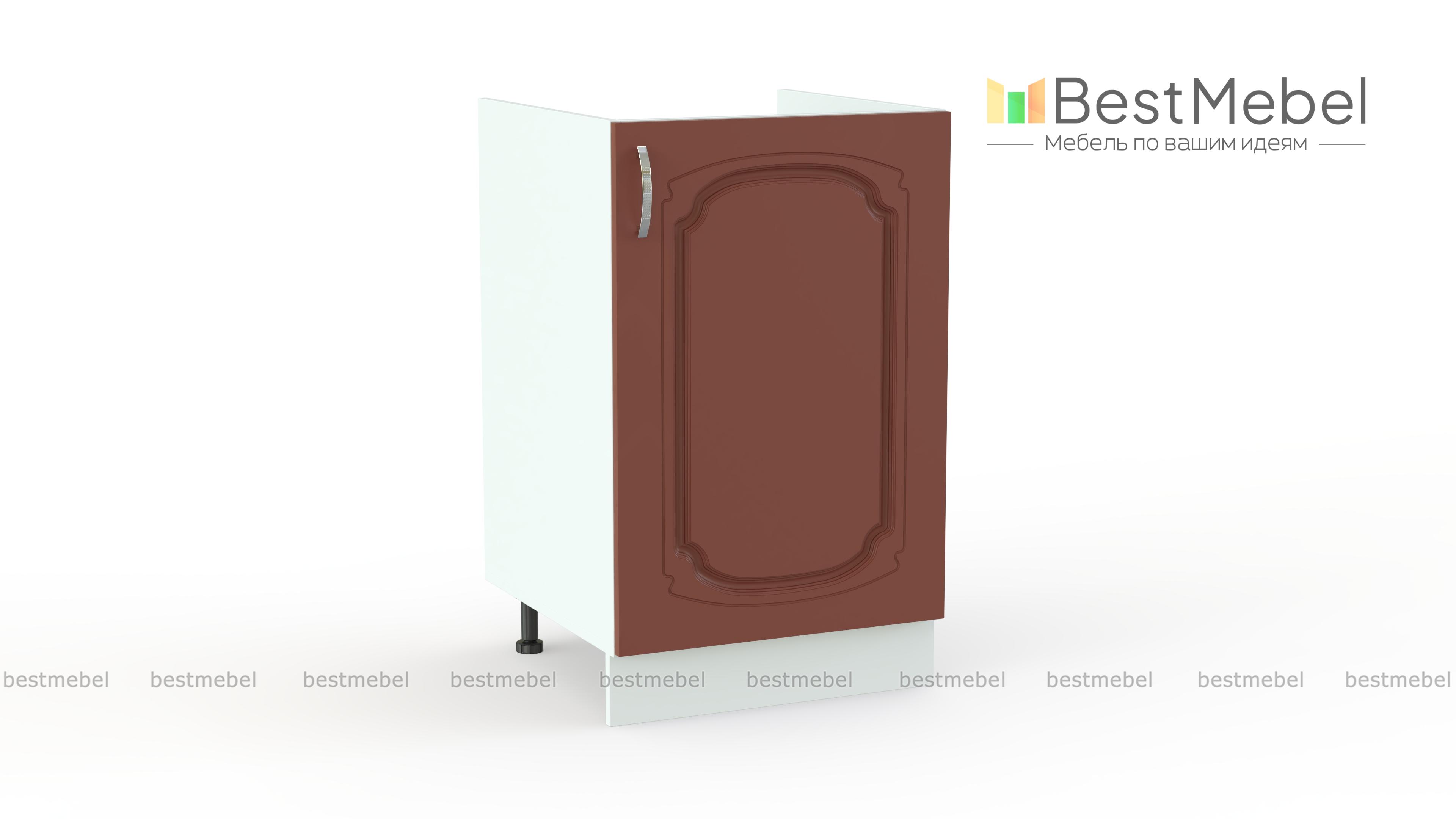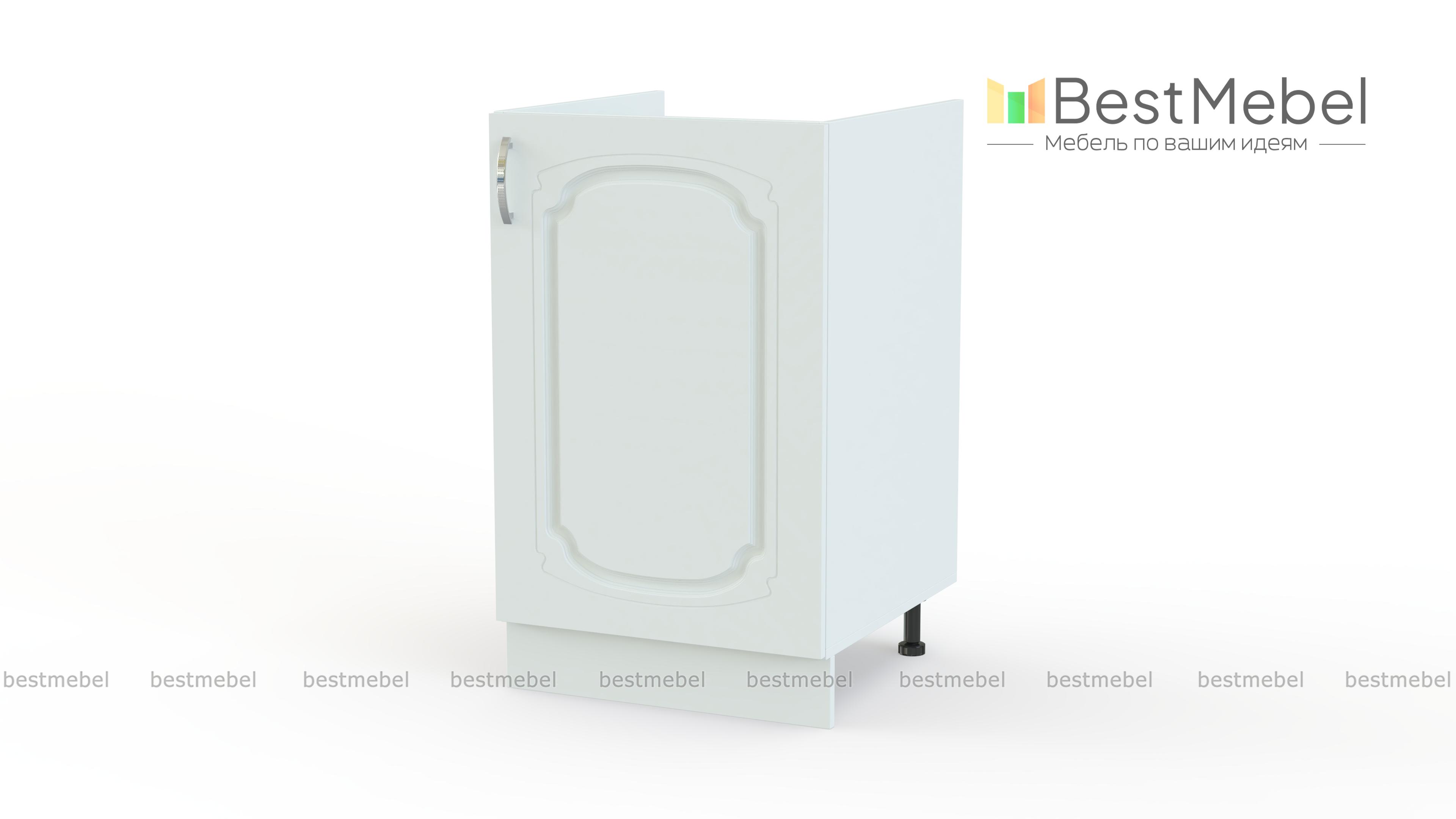 Шкаф нижний под мойку с 1-ой дверцей Настя BMS – необходимый элемент кухонного гарнитура. Классическая модель оборудована распашной дверцей и просторным внутренним отделением, сплошная задняя стенка отсутствует. Удобный в малогабаритных помещениях, небольшой шкаф разместит мойку, мусорный контейнер и скроет коммуникации, сделав интерьер эстетичным. Устойчивость конструкции обеспечивают регулируемые опоры, закрытые цоколем. Купить шкаф нижний под мойку с 1-ой дверцей Настя BMS с изящным фрезерованным рисунком приглашаем в наш интернет-магазин.
