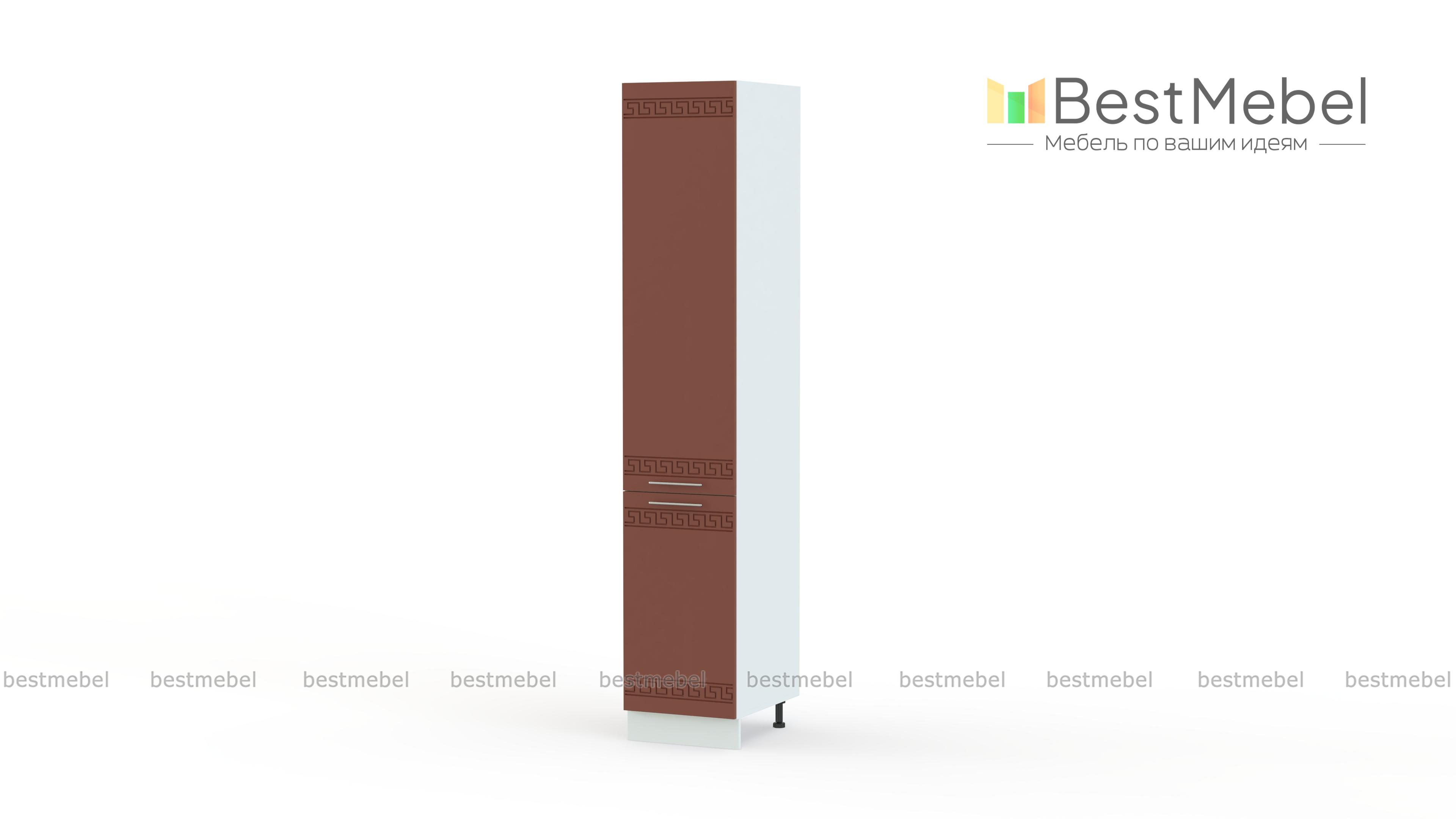 Шкаф-пенал 400 Греция BMS - высокая узкая модель, которая позволит сэкономить полезную площадь кухни. Вместительный шкаф оборудован системой хранения из двух распашных отделений с полками, удобных для сыпучих продуктов и габаритных кухонных принадлежностей. Вы сможете использовать пенал как самостоятельный предмет меблировки или в комплекте с другими элементами популярной серии с орнаментом в этностиле. Купить шкаф-пенал 400 Греция BMS по доступной цене вы всегда сможете в нашем интернет-магазине.