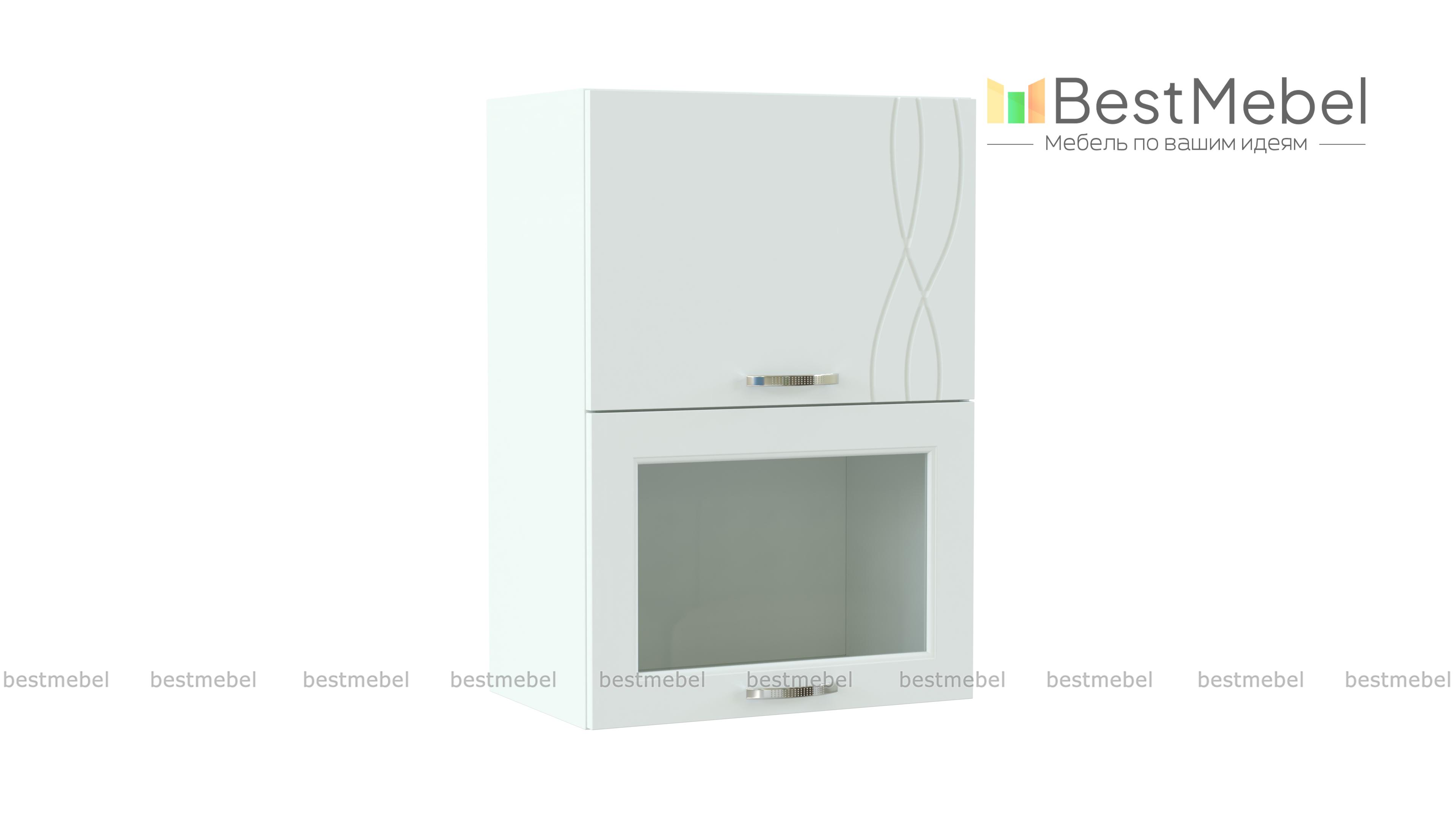 Шкаф-витрина навесной Софит BMS гармонично объединяет достоинства классики и современные тенденции. Шкаф станет оригинальным дополнением верхнего ряда модульного гарнитура и сделает композицию визуально легче. Модель оборудована двумя отделениями с откидными дверцами – с глухим фасадом и застекленным. Просторные внутренние отделения разместят посуду, чай или кофе, а украшением интерьера станут нежные матовые поверхности с фрезеровкой и вставка из прозрачного стекла. Купить шкаф-витрину навесной Софит BMS приглашаем в наш интернет-магазин.