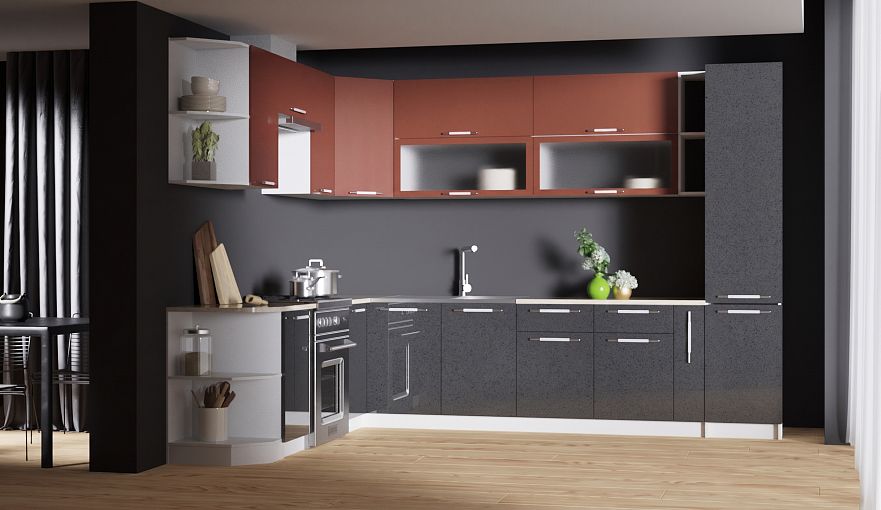 Кухня Ксения угловая 3 BMS отличается крупными габаритами, вместительностью и предназначена для меблировки просторных помещений. Модульный комплект Г-образной формы выгодно использует возможности планировки и поможет подобрать максимально комфортное сочетание элементов. Помимо стандартных распашных и выдвижных шкафов кухня оборудована открытыми торцевыми полками, бутылочницей, высоким пеналом. Матовые фасады эффектны, износостойки и просты в уходе. Купить кухню Ксения угловая 3 BMS вы сможете в нашем интернет-магазине по привлекательной цене.