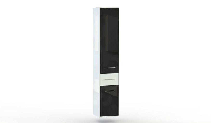Шкаф подвесной Бамби 3 BMS с корпусом в белом оттенке и черным глянцевым фасадом с фрезеровкой смотрится актуально и гармонично впишется в современные интерьеры. Высокий вместительный пенал станет отличным выбором для просторной ванной комнаты. Для удобного хранения уходовых средств, полотенец, бытовой химии и многого другого предусмотрены два распашных отделения и выдвижной ящик. Купить шкаф подвесной Бамби 3 BMS приглашаем выгодно в наш интернет-магазин.