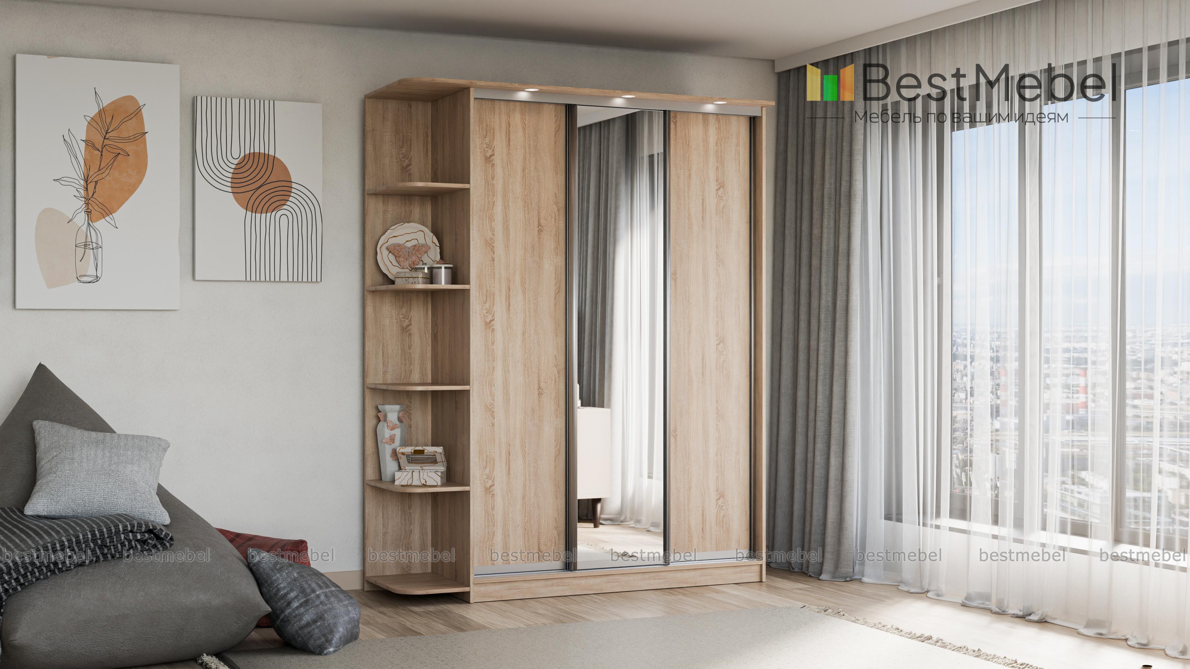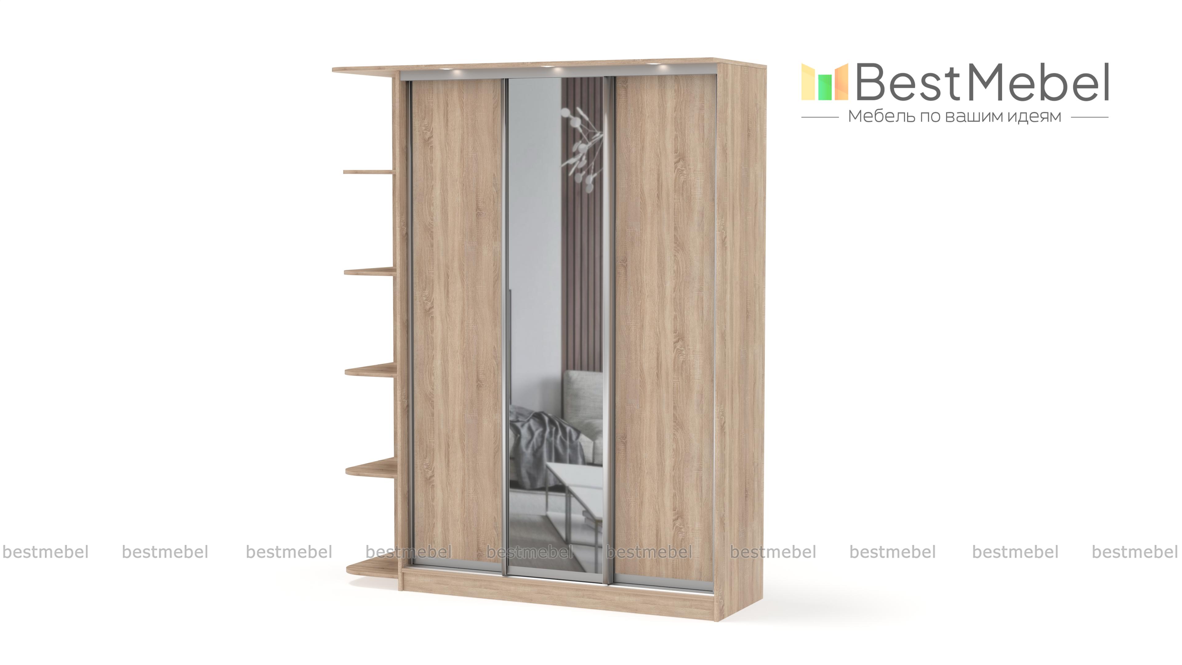 Шкаф-купе Байкал-Рамир 3 BMS поможет вам разместить как одежду и домашний текстиль, так и книги, предметы декора и необходимые под рукой мелочи. Трехдверная модель с зеркалом дополнена безопасно скругленными торцевыми полками и козырьком со встроенной подсветкой, которая делает пользование особенно комфортным. Выполненный из ламинированной плиты древесных тонов, шкаф гармонично вписывается в большинство современных интерьеров. Купить шкаф-купе Байкал-Рамир 3 BMS приглашаем в наш интернет-магазин с выбором цвета и размеров.Купить недорого шкаф-купе Байкал-Рамир 3 BMS Вы можете на нашем веб-сайте.