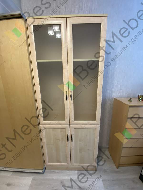 Хороший книжный шкаф. Сделали под мои размеры + выбрал дверцы с доводчиками и подрезку под плинтус, и еще ручки. Лучше собирать в конструкторе, чтобы не упустить детали изделия. Изготовление и доставка до Беларуси +/- 3 недели, собрать шкаф можно самому. Пару дней пах ДСП или краской, или еще чем-то таким, потом проветрился и сейчас все нормально. Заказ:№ 1229910.