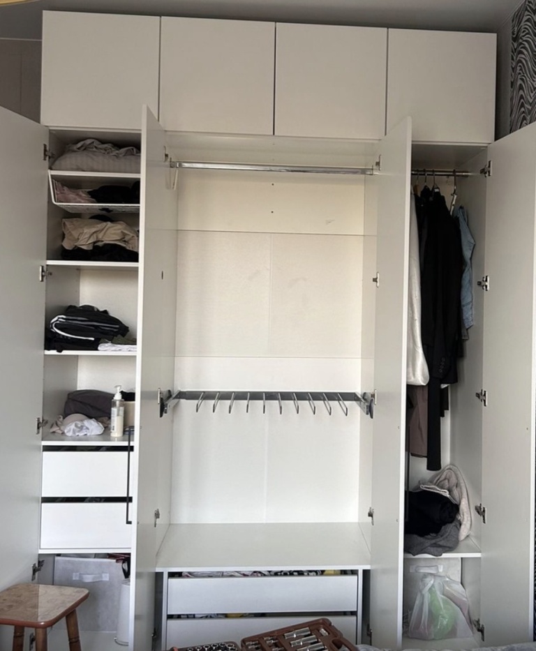 просто шкаф эконом класса 👍, служит уже третий год , проблем нет,. все косяки по материалу лдсп были с самого начала сборки , в принципе нормальный шкаф , немного ошибся при заказе с высотой полок где верхняя одежда вешается , не кретично