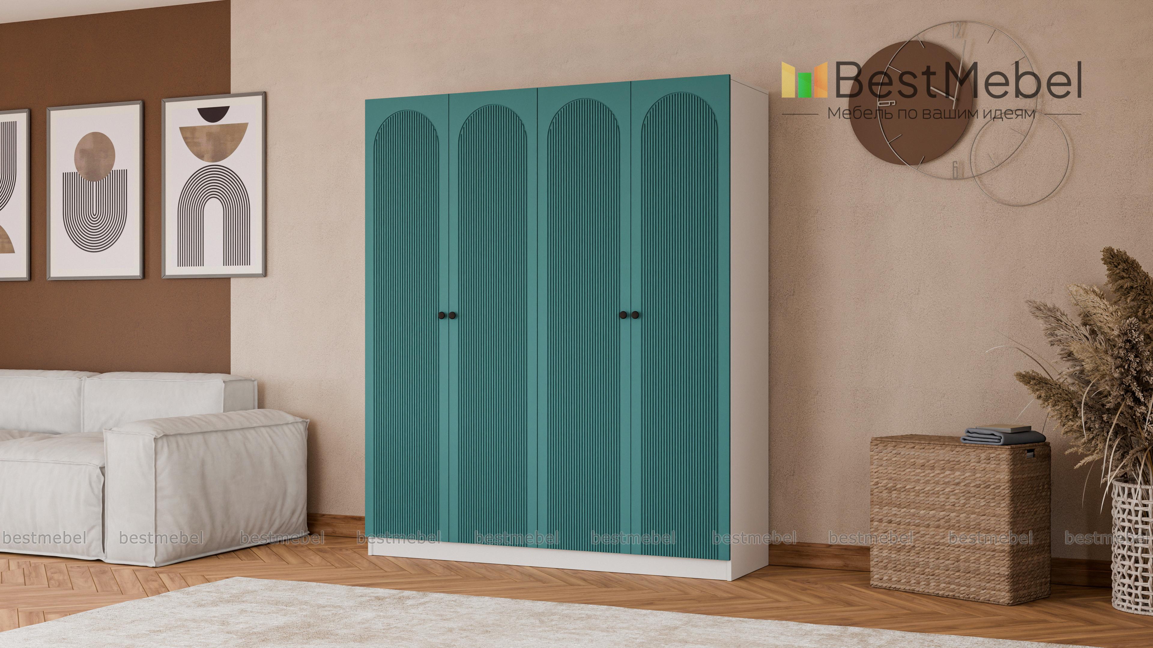 Шкаф распашной Рене 29 BMS — вместительный и очень стильный в темном оформлении. Фасад этой четырехдверной модели, изготовленной из ламинированной ДСП и МДФ, украшает геометричная фрезеровка с элегантными арками, на дверцы установлены небольшие круглые ручки. Два платяных отделения — оптимальное решение для хранения одежды, обуви и аксессуаров двух человек. Купить шкаф распашной Рене 29 BMS вы сможете на сайте нашего интернет-магазина, по желанию изменив размеры, цвет и компоновку.