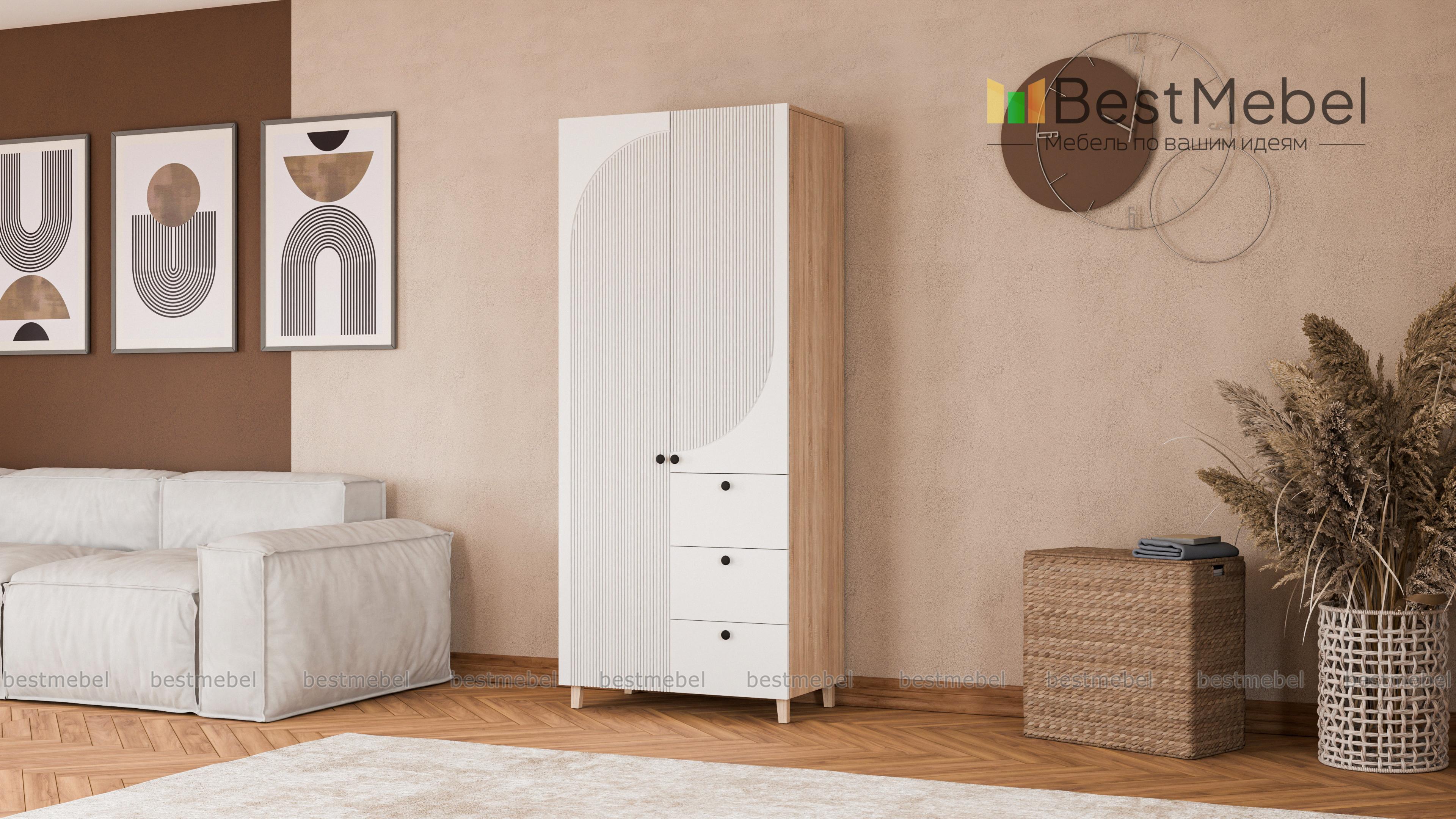 Шкаф распашной Вивьен 2 BMS дополнен тремя ящиками с легким выдвижением, в которых будут под рукой аксессуары, мелкий трикотаж и белье. Помимо удобной конструкции модель отличается трендовой палитрой и стильной отделкой, а материалы изготовления гарантируют качество и безопасность. Асимметричный рельеф на створках делает дизайн оригинальным и запоминающимся. Купить шкаф распашной Вивьен 2 BMS с изготовлением по индивидуальным размерам приглашаем в наш интернет-магазин.