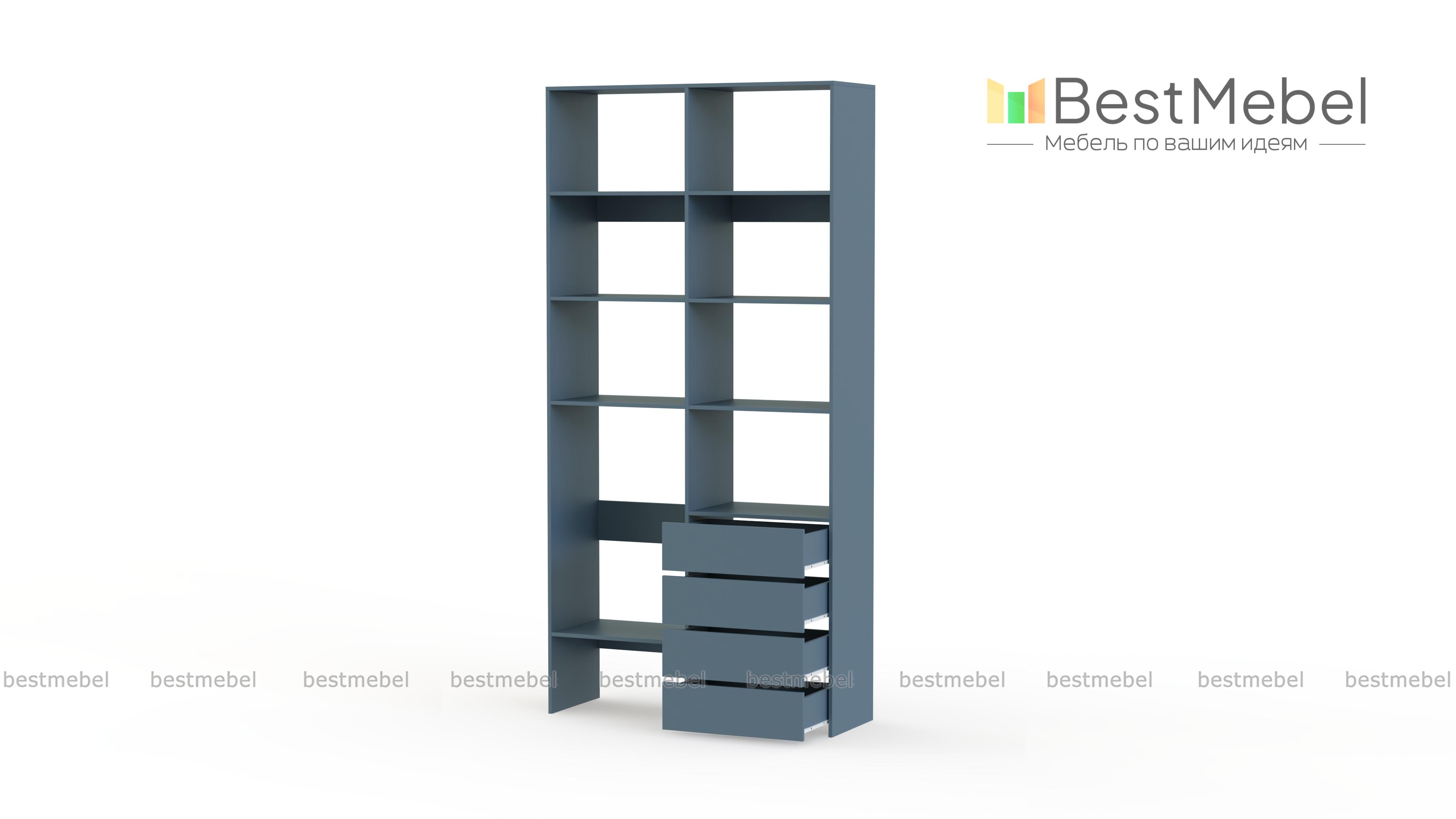 Стеллаж для одежды Мирта 4 BMS – практичное решение для гардеробной, детской комнаты или спальни. Лаконичный современный дизайн сочетается с надежной конструкцией из устойчивой к повреждениям ламинированной плиты. Открытые секции разной высоты помогут вам разместить как небольшие, так и габаритные вещи, а для мелочей предусмотрены четыре выдвижных ящика. Купить стеллаж для одежды Мирта 4 BMS приглашаем в наш интернет-магазин с выбором размеров и цвета по каталогу.