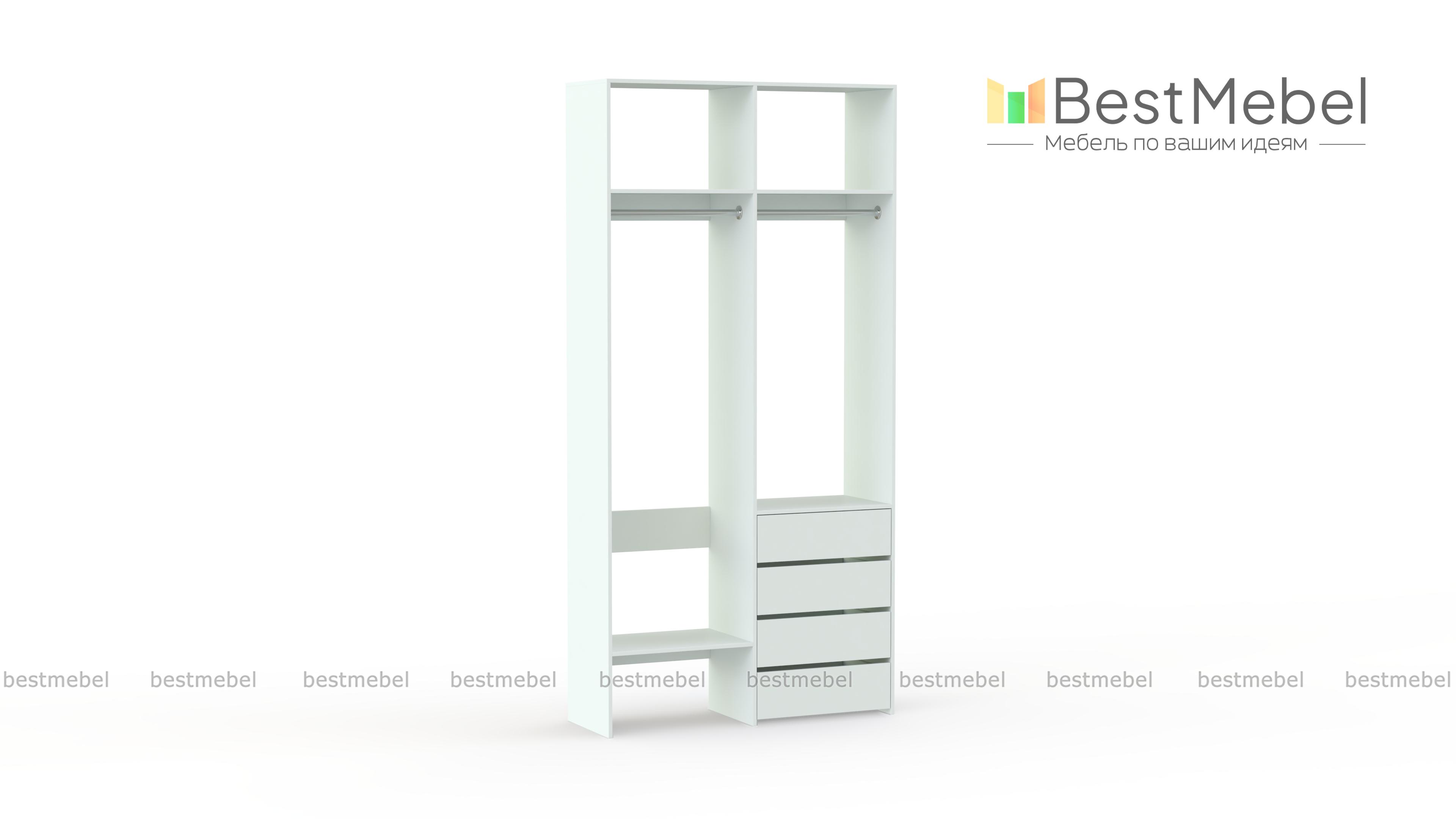 Стеллаж для одежды Мирта 45 BMS позволяет выделить зоны для хранения разных вещей. Комплектация включает в себя отделения со штангами для короткой и длинной одежды, полки сверху и снизу, а также ряд из четырех выдвижных ящиков справа. Двухсекционный стеллаж выполнен в светлом базовом оттенке и отлично смотрится на небольшом метраже. Купить стеллаж для одежды Мирта 45 BMS вы всегда сможете в нашем интернет-магазине, подобрав нужные размеры и оттенок по каталогу.