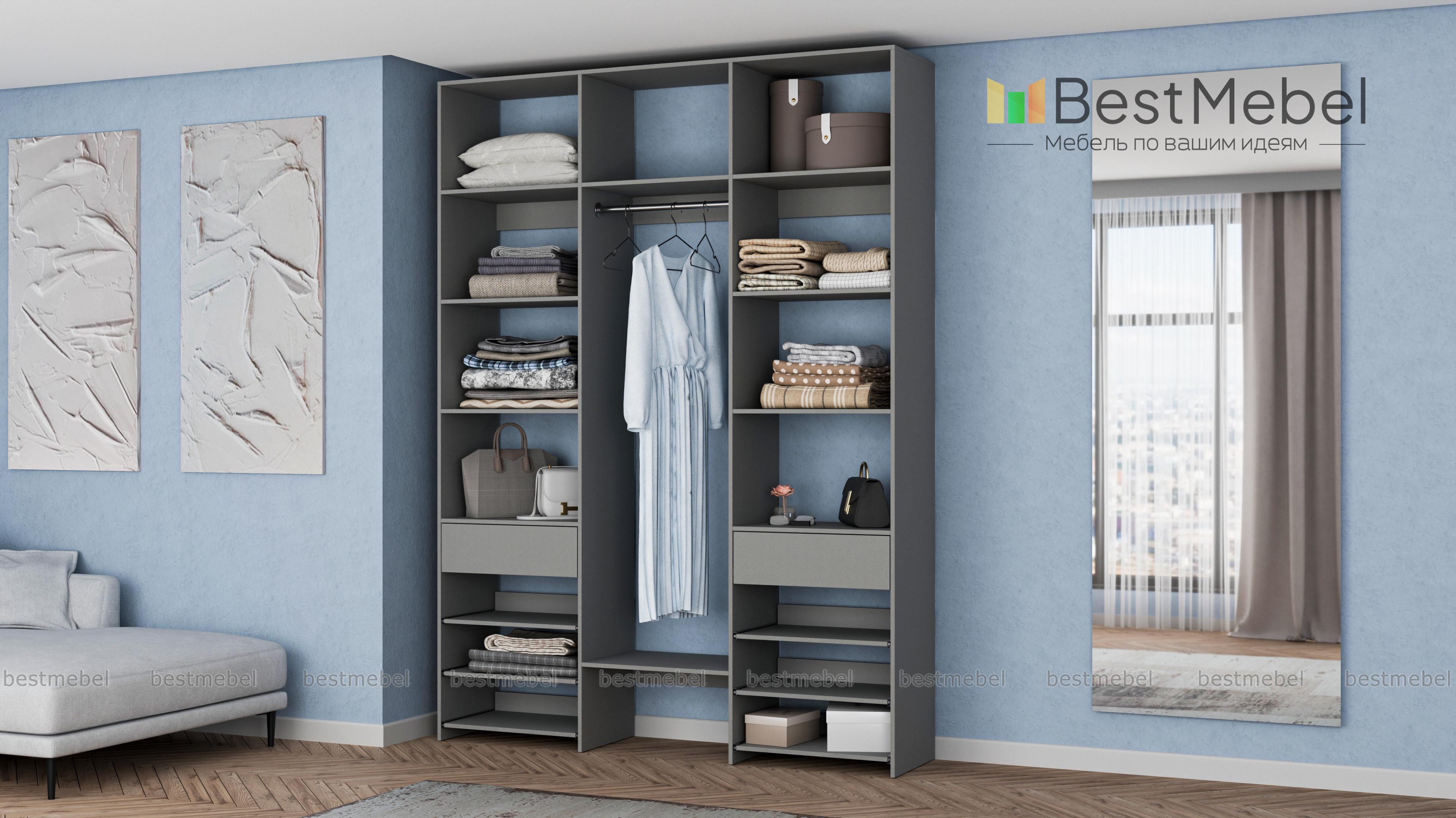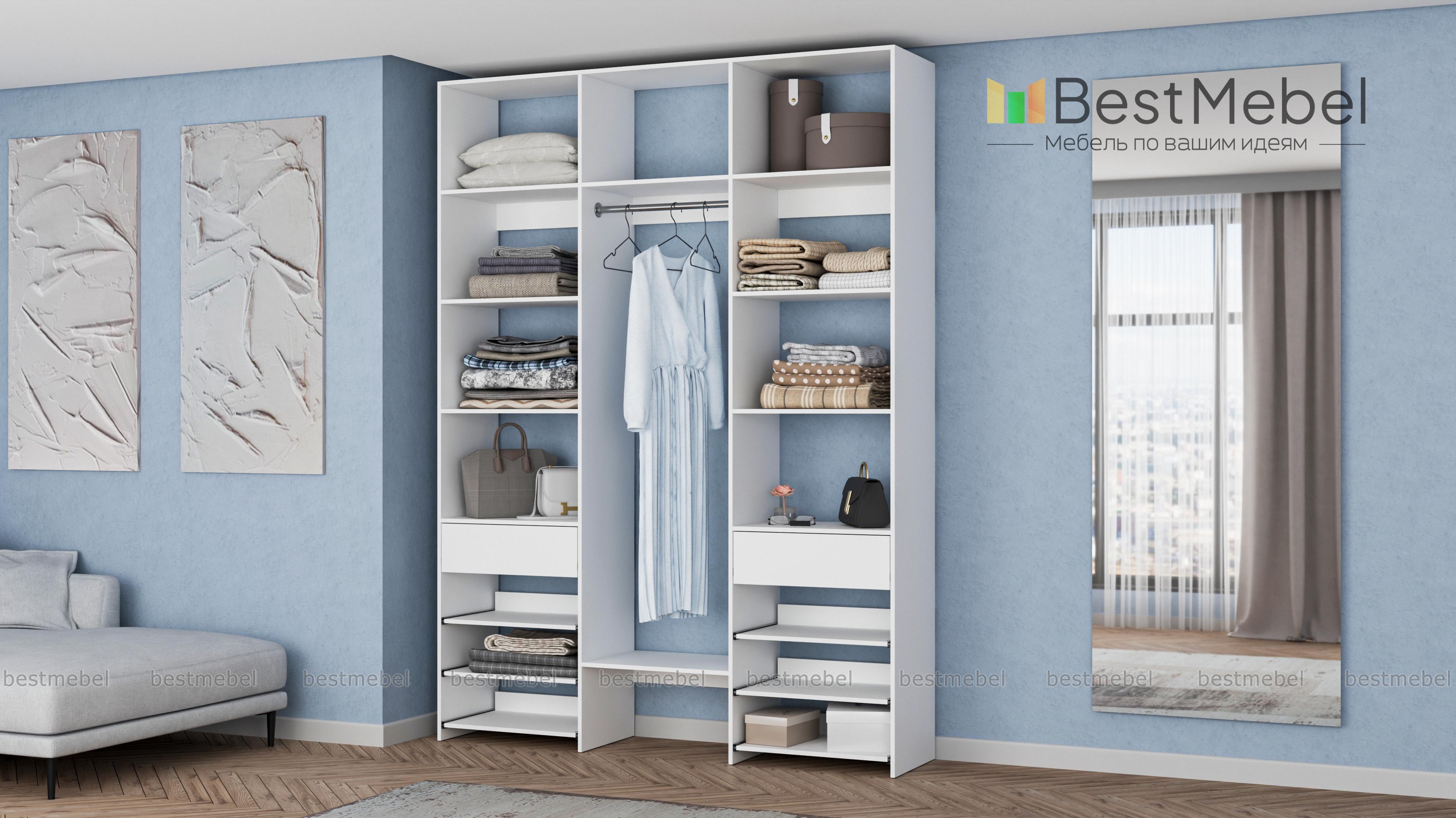 Стеллаж для одежды Мирта 93 BMS поможет вам разместить повседневные и редко используемые вещи. Удобная конфигурация включает в себя расположенные на разной высоте полки и секцию для вешалок, два ящика под мелкие предметы и выдвижные панели справа и слева. Благодаря изготовлению из ламинированной плиты стеллаж надежный, доступный по цене и обладает широким выбором актуальных оттенков. Купить стеллаж для одежды Мирта 93 BMS в оптимальном размере приглашаем к нам в интернет-магазин.