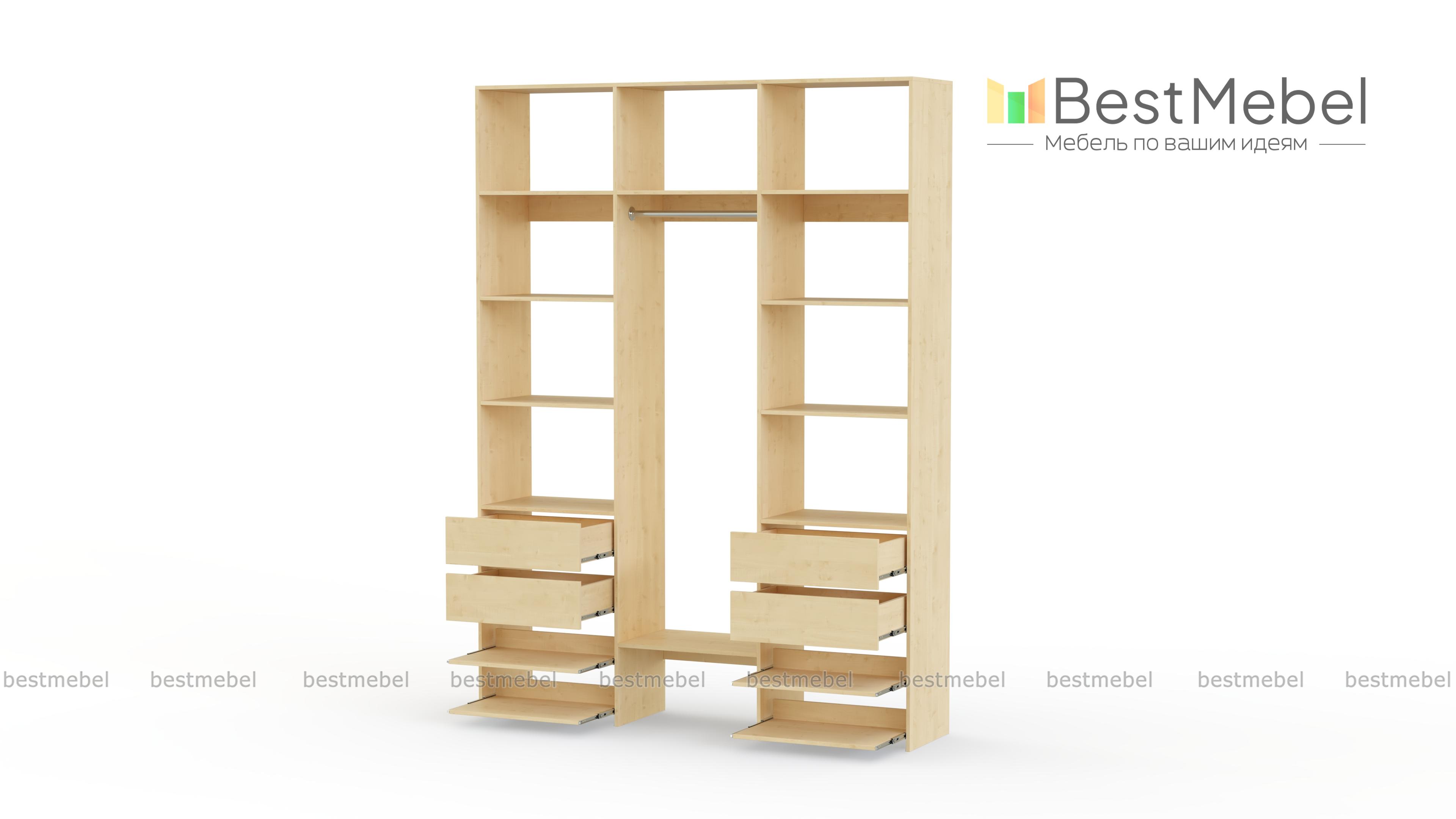 Стеллаж для одежды Мирта 94 BMS сделает удобным хранение различных предметов гардероба. Легко доставать вещи помогут вам открытые боковые и верхние секции, платяная штанга, две пары ящиков и выдвижные панели. Ламинированная плита в природном оттенке — экологичный современный материал, выдерживающий значительные нагрузки. Купить стеллаж для одежды Мирта 94 BMS вы сможете в нашем интернет-магазине, подобрав размеры и гармонирующий с вашим интерьером оттенок.