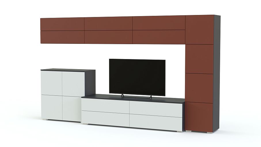Гостиная Хай-Тэк-19 Набор 8 BMS – идеальное решение для ультрасовременных интерьеров. Лаконичная и эффектная, гостиная отличается строгой геометрией форм, подчеркнутой контрастным цветовым решением. Матовая модель будет гармонично смотреться и в просторном, и в малогабаритном помещении благодаря модульной конструкции. В комплекте напольные и навесные элементы с глухими сплошными фасадами и открытая полка, которые помогут оформить зону ТВ, разместить аппаратуру, предметы декора и многое другое. Купить гостиную Хай-Тэк-19 Набор 8 BMS приглашаем в наш интернет-магазин.