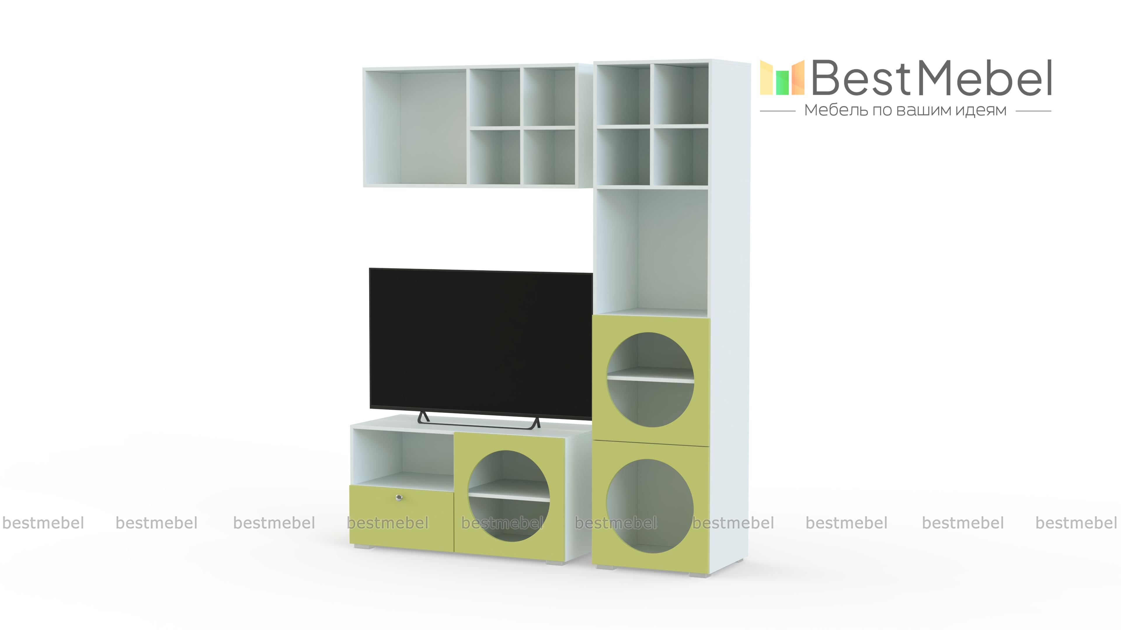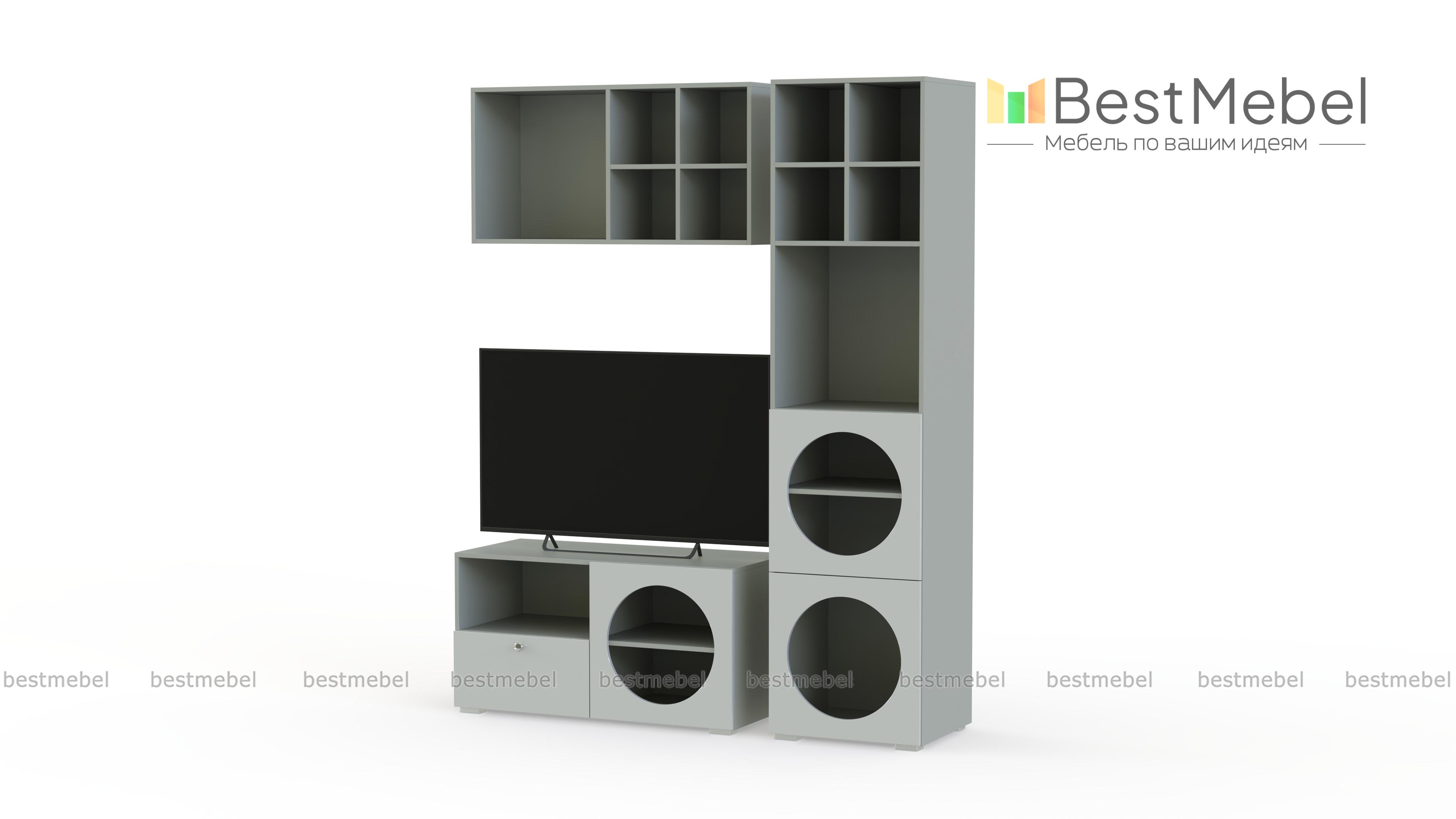 Стенка для гостиной Авелин 1 BMS выполнена в современной стилистике. Мини-композиция для небольшой квартиры или студии объединила тумбу под ТВ, высокий узкий стеллаж и книжную полку. Помимо стандартных отсеков для хранения, стенка оборудована секциями с круглыми вырезами, которые придают особенную выразительность лаконичному дизайну. Купить стенку для гостиной Авелин 1 BMS вы сможете на сайте нашего интернет-магазина, самостоятельно подобрав цвета и размеры.