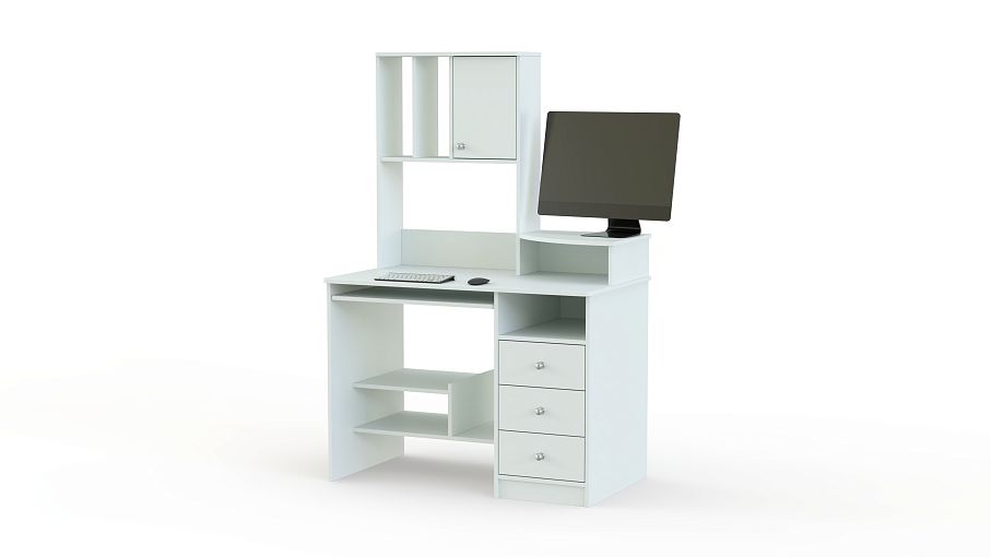 Стол компьютерный СК Милан BMS ‒ идеальный выбор для тех, кто ценит порядок на рабочем месте. Угловая полка для монитора; отделение для системного блока, со свободным доступом воздуха; удачное месторасположение полочки для принтера; 3 вместительных ящика, для рабочих принадлежностей, секции для мелочей, небольшой шкафчик для канцелярии, полка для файлов, учебной литературы, методических пособий, справочников, выдвижная панель для клавиатуры с мышкой. Элементы продуманы до деталей ‒ все необходимое под рукой. Базовая модель выполнена в белом оттенке. Заказать этот стол можно на нашем сайте совсем недорого.