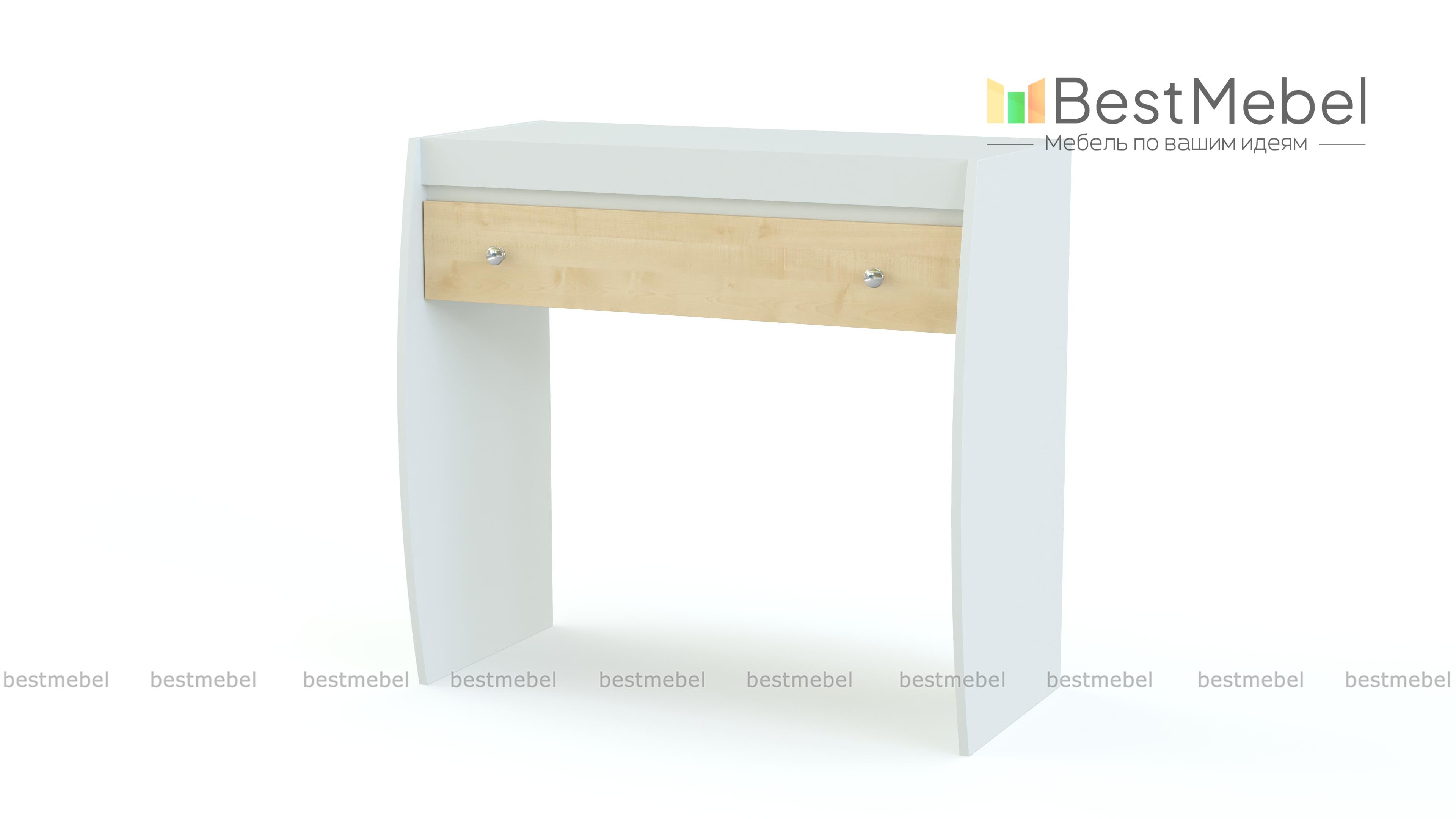 Туалетный стол Cseno BMS в стиле модернизм – это интересное решение для Вашей комнаты и непосредственно личного уголка по наведению красоты. Модель имеет большой и вместительный выдвижной ящик. Он в свою очередь оборудован оригинальными ручками. Боковые панели изделия имеют изогнутый вид. Купить необычный туалетный стол Cseno BMS можно на нашем сайте по приятным ценам.
