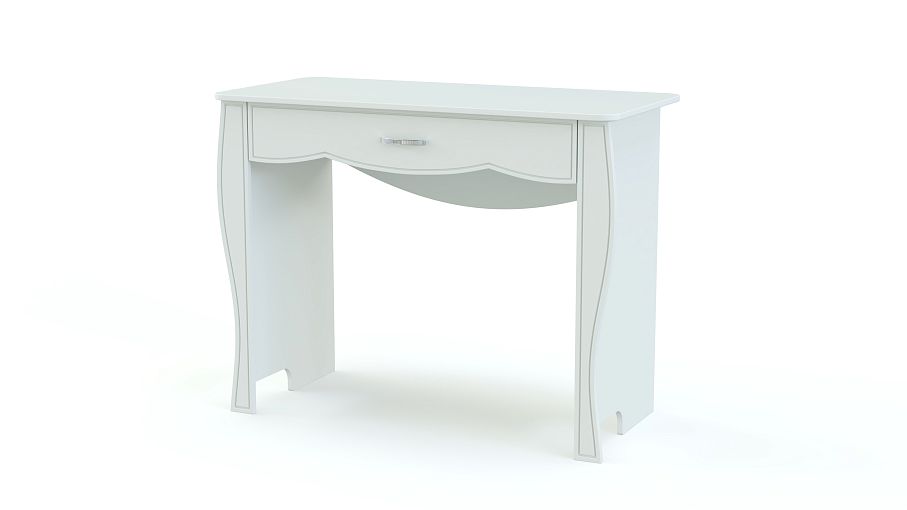 Стол туалетный Кэрри 6 BMS станет изящным дополнением классического спального гарнитура. Выполненный в светлых тонах, столик с фигурно вырезанными накладками на боковинах украшен по фасаду фрезеровкой. Для удобного хранения необходимых средств по уходу под столешницей имеется вместительный выдвижной ящик. Компактный и безопасно скругленный по углам, столик оптимален для небольших комнат. Купить стол туалетный Кэрри 6 BMS вы сможете по доступной цене в нашем интернет-магазине.