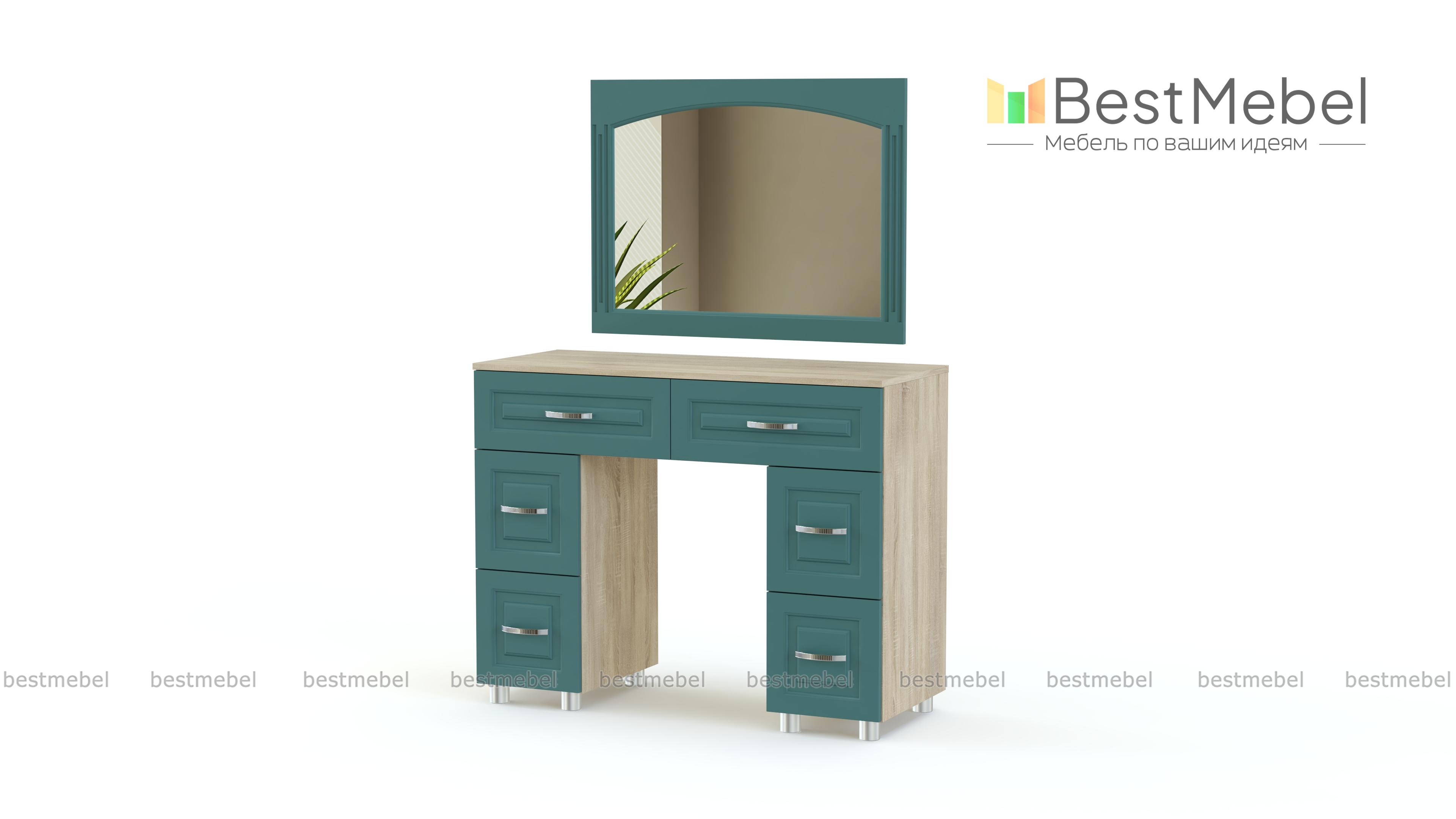 Туалетный стол Элизабет Композиция 2 BMS – это двухтумбовая модель с широкой столешницей, двумя большими и четырьмя малыми выдвижными ящиками. Дополненный навесным зеркалом в элегантной раме, столик сделает уход за собой комфортным и украсит спальный интерьер. Выполненная в универсальных светлых тонах, модель декорирована классической рамочной фрезеровкой и располагается на регулируемых пластиковых ножках. Купить туалетный стол Элизабет Композиция 2 BMS приглашаем в наш интернет-магазин.
