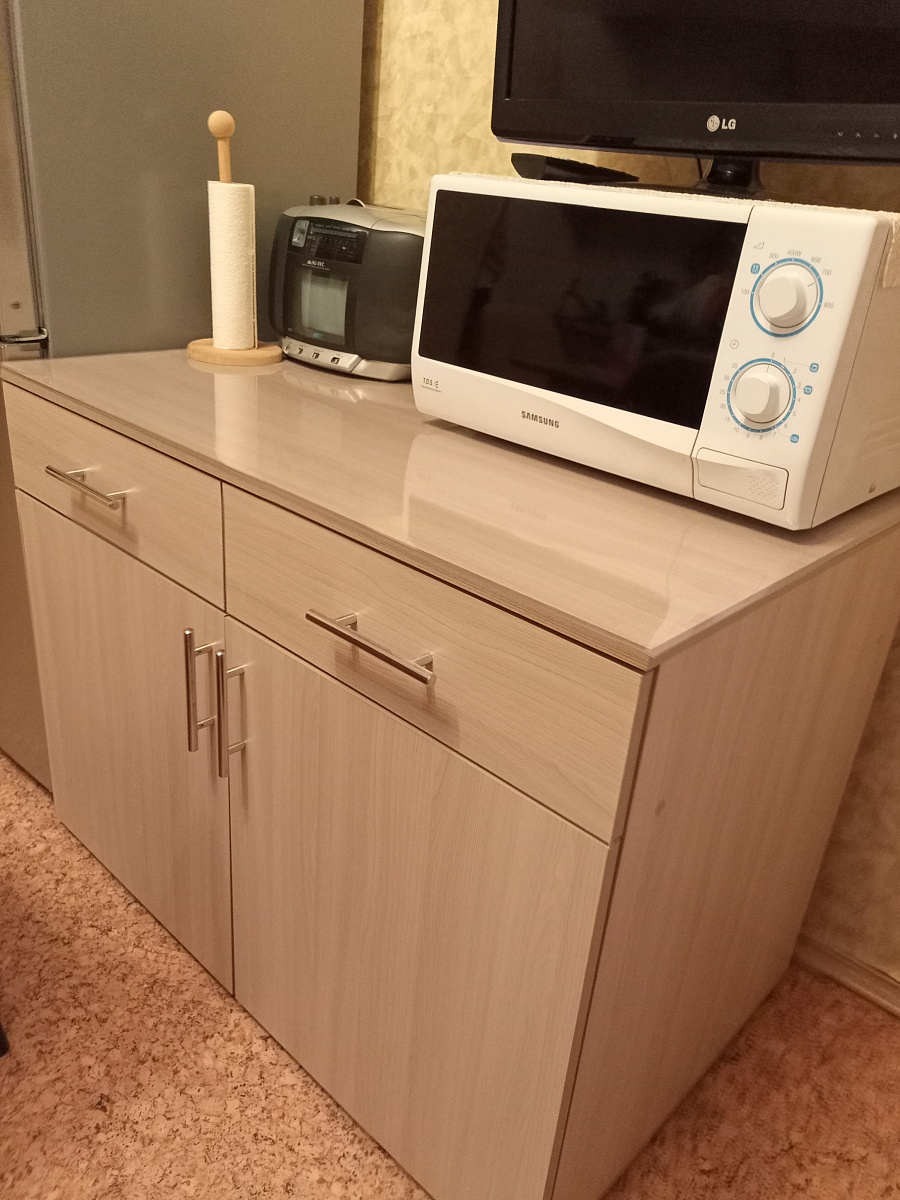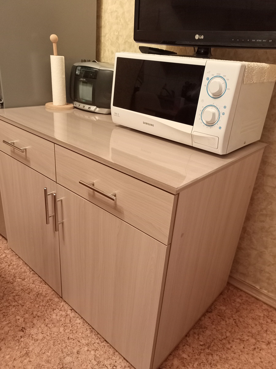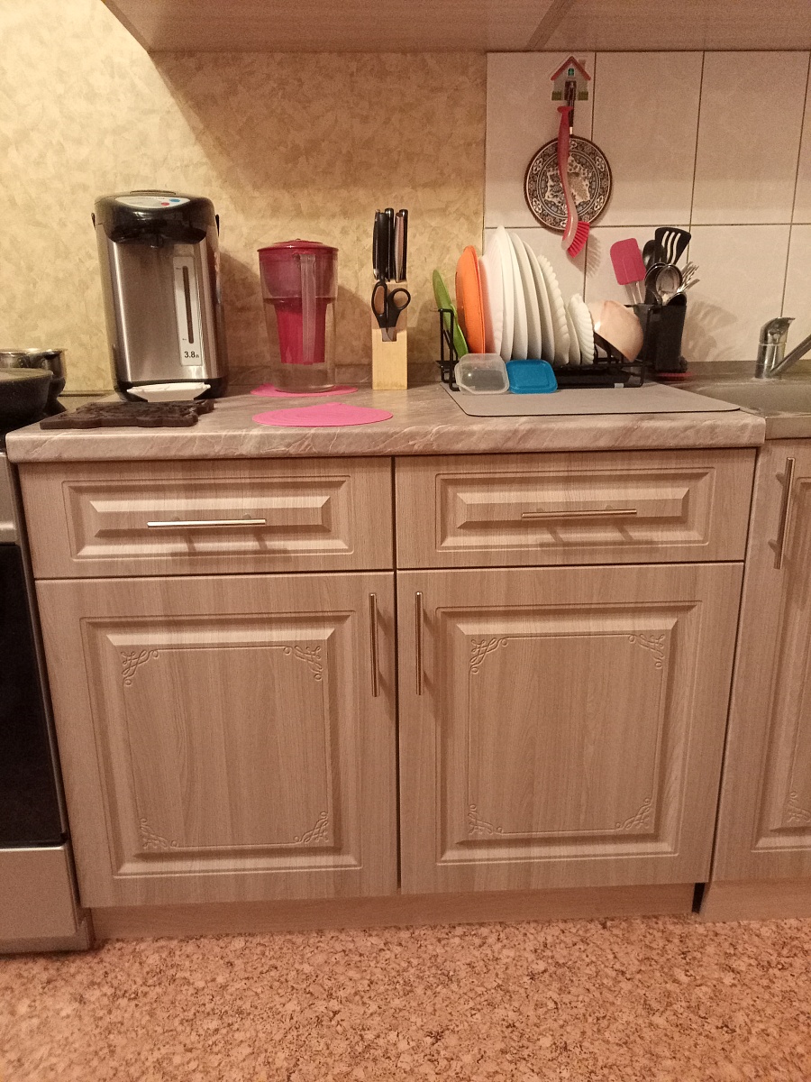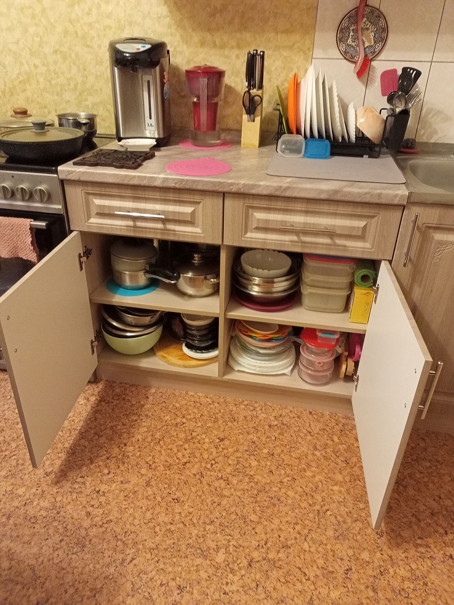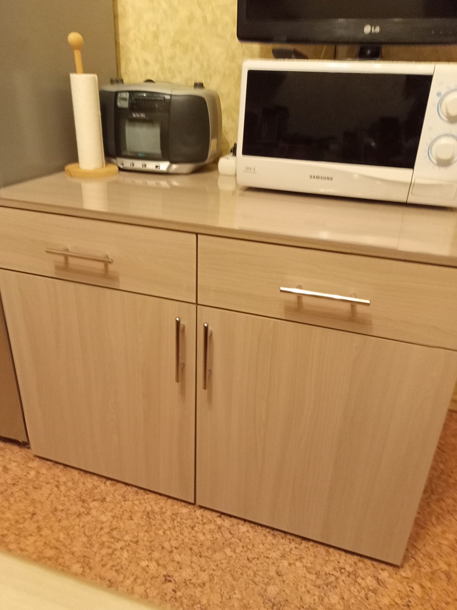 Тумба нижняя 2 ящика и двери Виктория заказала по своим размерам и понравившемуся цвету ,тумба вместительная ,разместила много предметов домашнего обихода ,столовые приборы ,кастрюли,тарелки и много различных мелочей.Столешницу заказала по образцам в Бемтмебельшоп,доставили вовремя ,собрали быстро .Покупкой довольна .Рекомендую.
