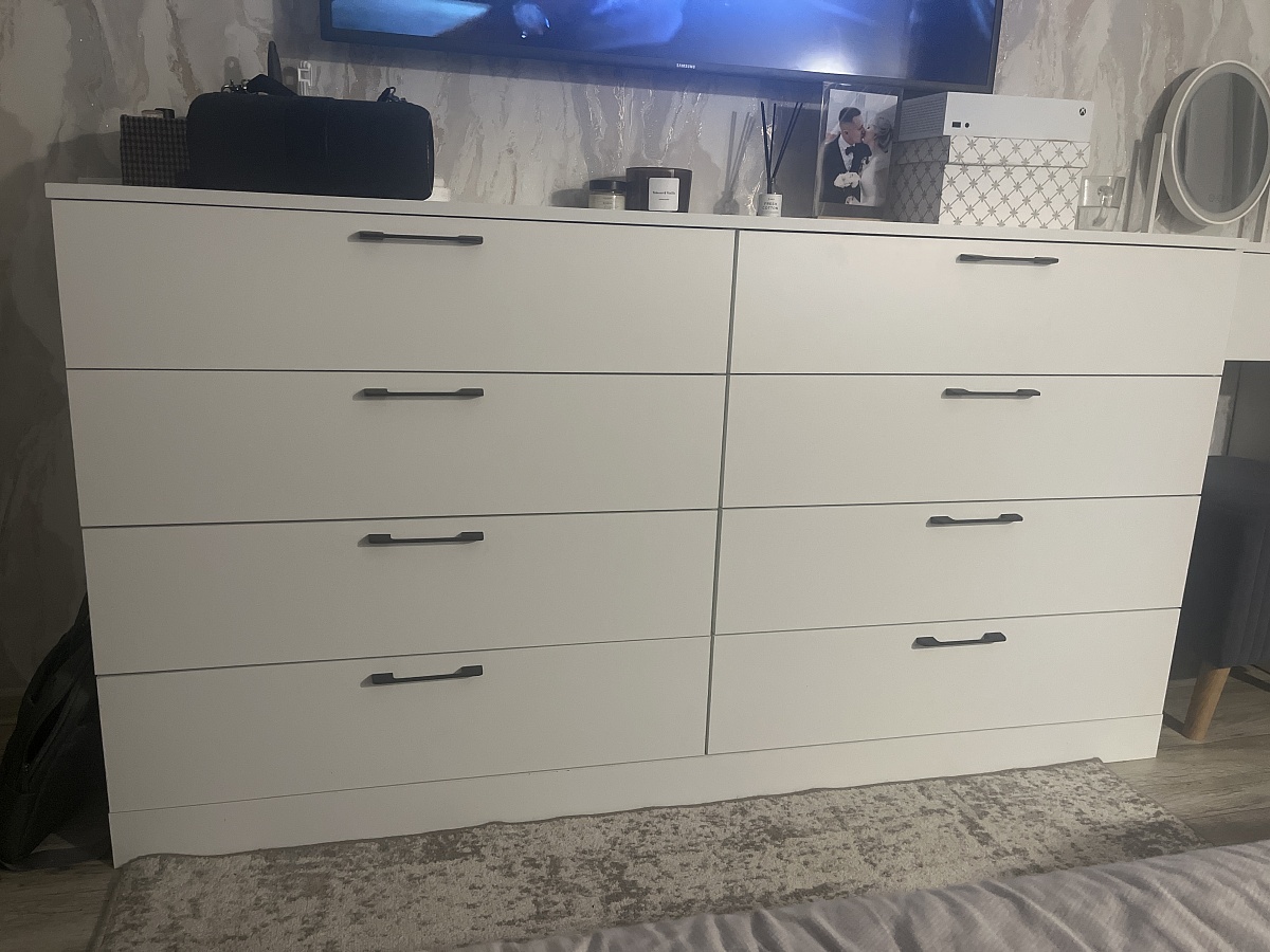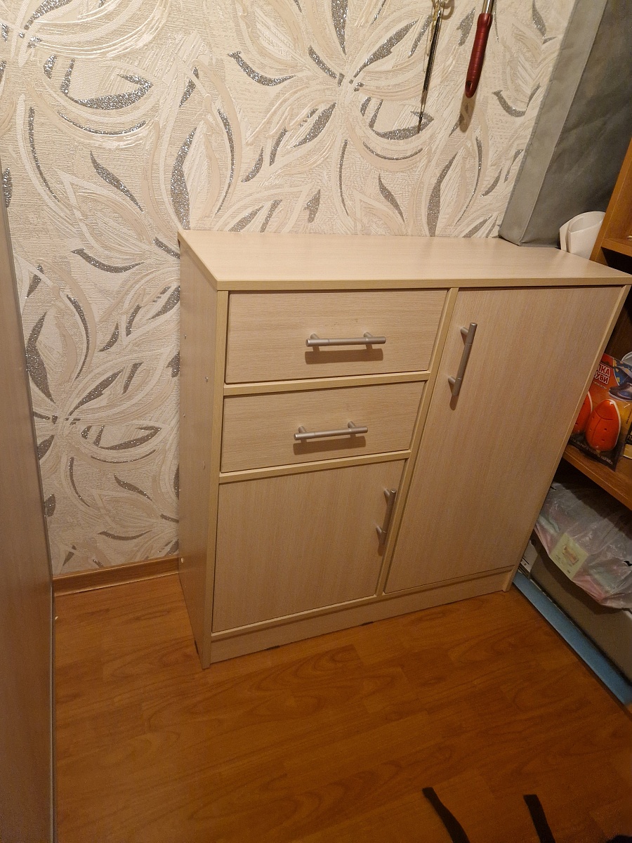 Заказ № 00000848580Комод классный, за свою цену вообще. Очень вместительный и удобный, направляющие шариковые хорошие, ящики выкатываются полностью, что тоже удобно. Ручки устанавливали сами, свои. Заказывала без ручек. Размеры комода немного меняли.