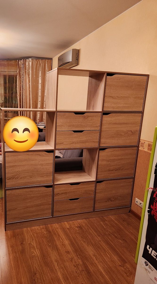 Огромное спасибо компании и сотрудникам за такую прекрасную возможность создать изделие по своему вкусу! Мы поменяли размер, расположение закрытых отделений, ручки и другое. Наш проект согласовал конструктор за день и через 2 дня нам уже привезли готовое изделие! Вчера от компании приехал сборщик мебели Максим и собрал стеллаж. Огромное ему спасибо за аккуратность! Сам стеллаж прекрасен, все ровненькое, все крепления и размеры четкие. В комплекте даже были запасные крепежи. Желаем вашей компании дальнейшего развития!