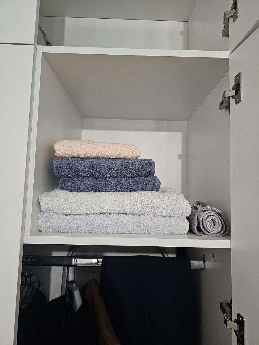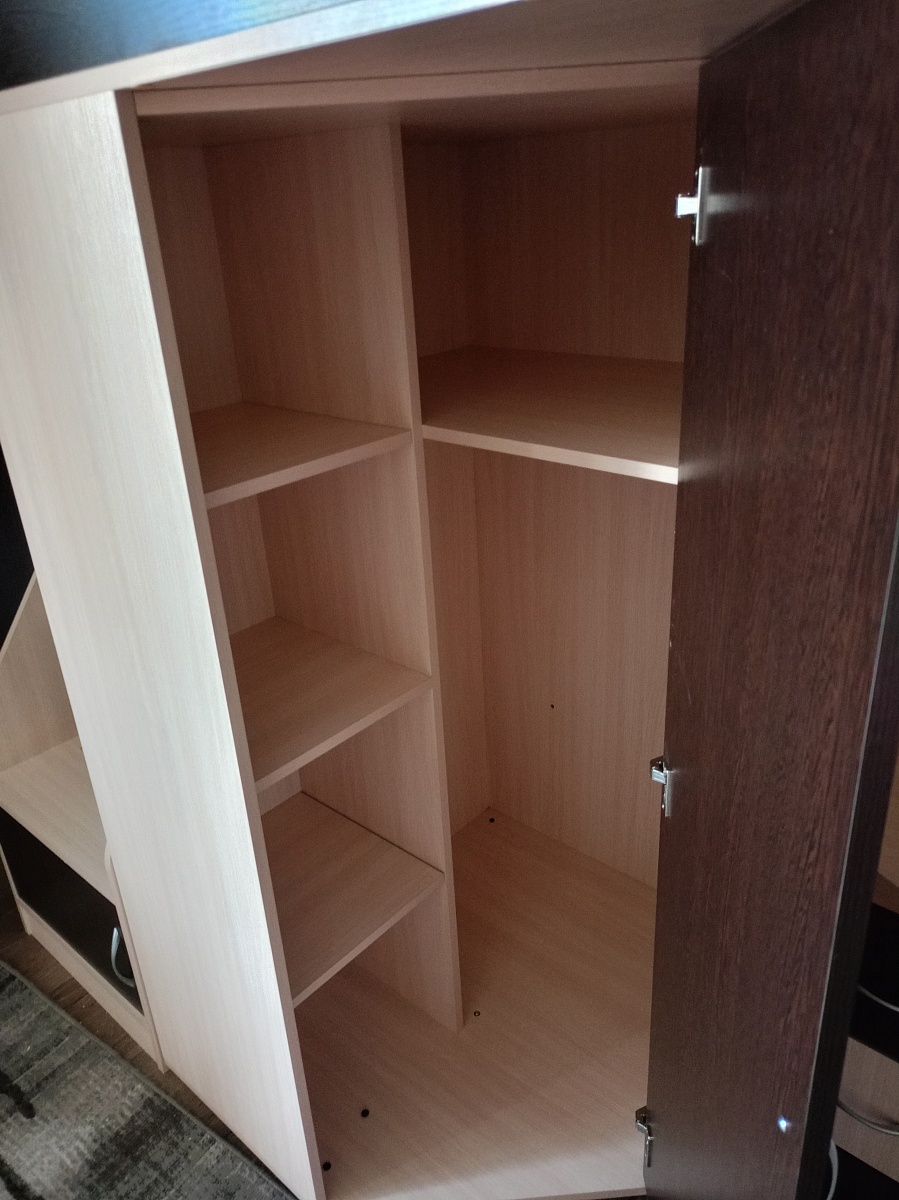 Единственный шкаф, который смог идеально подогнать в нишу спальни от и до стены. Продуманные полки, качественная фурнитура. Очень понравились черные ручки, как тактильно, так и по дизайну.