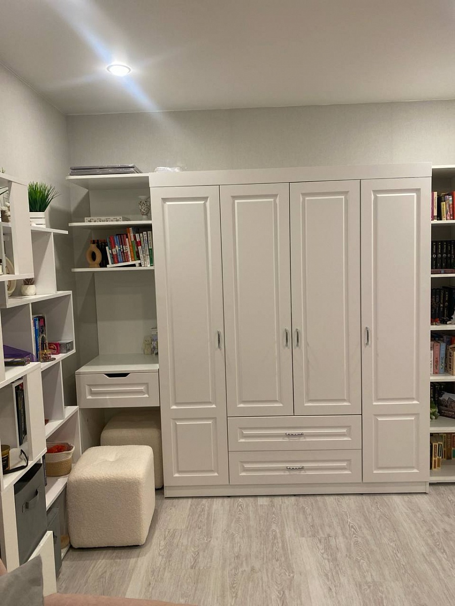 Шкаф невероятно красивый! Фрезеровка сказочная! Был сделан по нашим размерам, что очень удобно. Качество хорошее. Приехал целым, без повреждений, полный комплект.