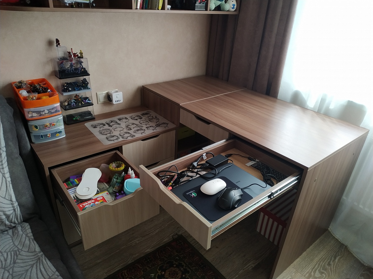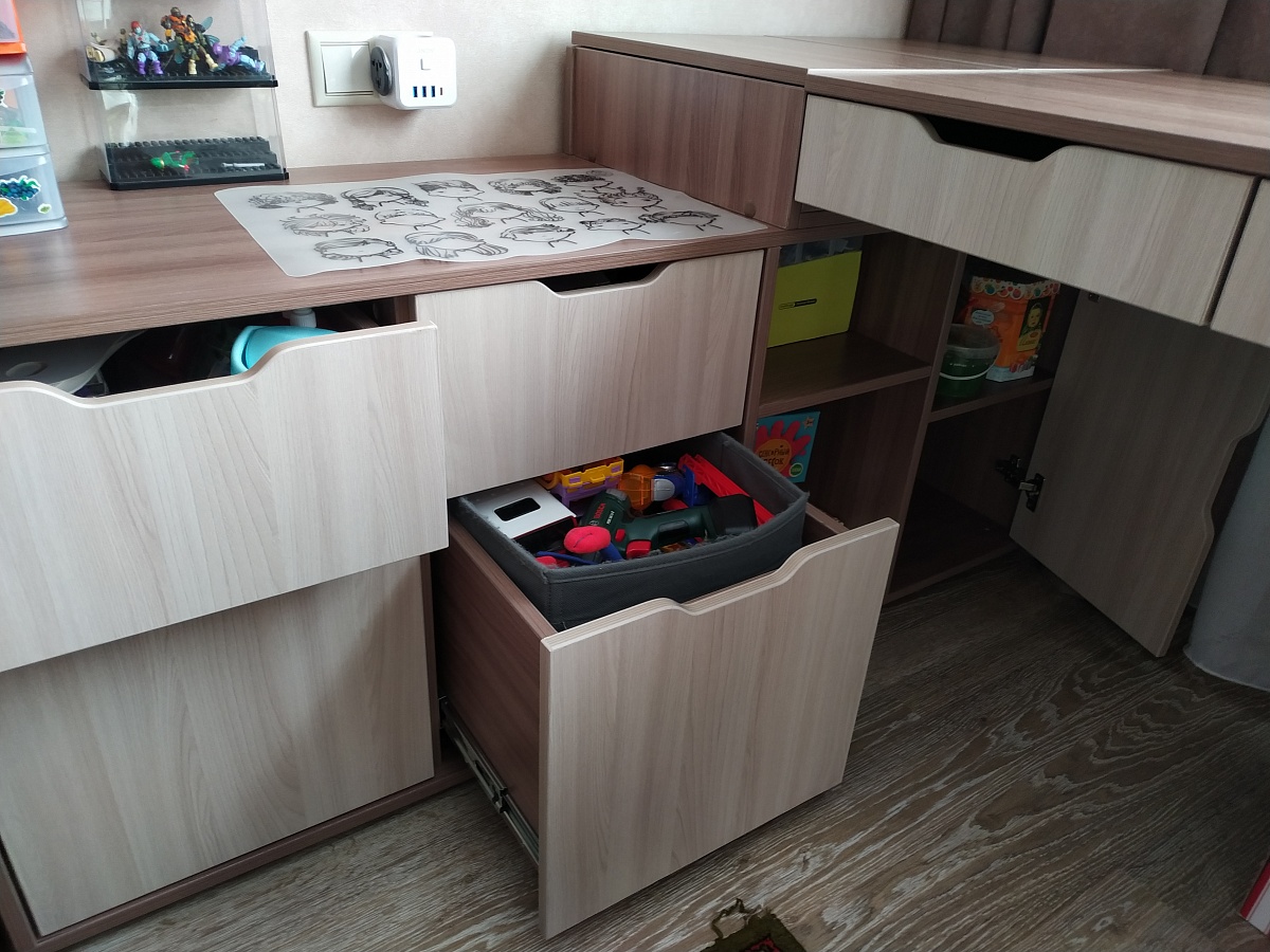 Заказывали подобный стол с индивидуальными параметрами. Плюс полка навесная. Остались очень довольны и качеством и ценой и сроками исполнения. Ранее заказывала 2 шкафа в прихожую. Полностью воплотили мои задумки и хотелки, решили все возникшие трудности, поэтому и обратилась второй раз. С этим заказом все прошло гладко, собрали сразу без довозов. Сборщикам отдельное спасибо.