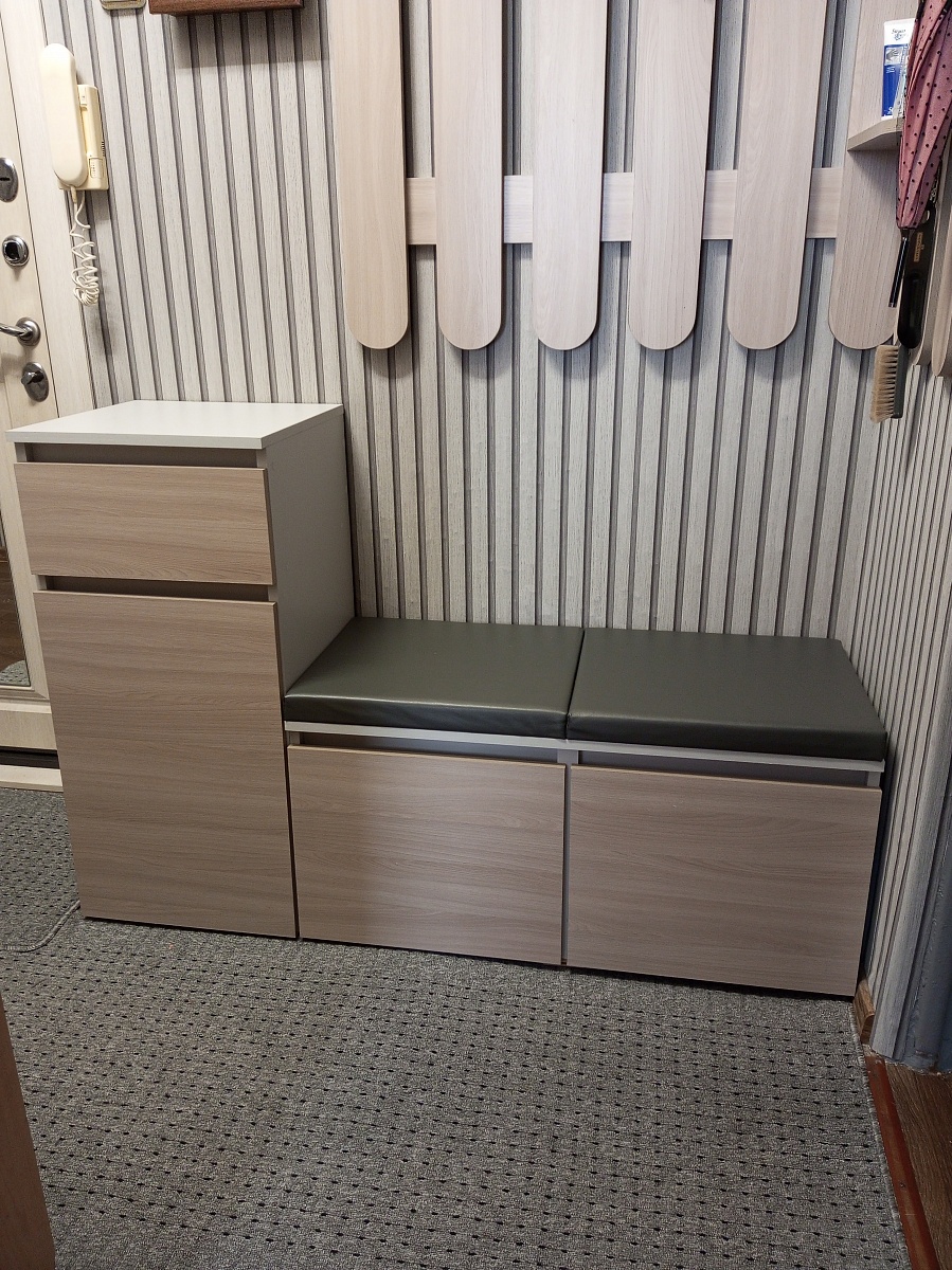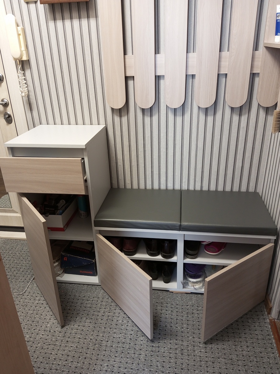 Собирали прихожую у не стандартном коридоре. Обувница прекрасно вписалась, даже размеры не пришлось менять, только цвет. Собирали сами. Хорошо смотрится, как один комплект, с угловой вешалкой Микс Лайт1. Единственно, что нельзя в этой модели сделать выпил под плинтус. А в целом прекрасно.