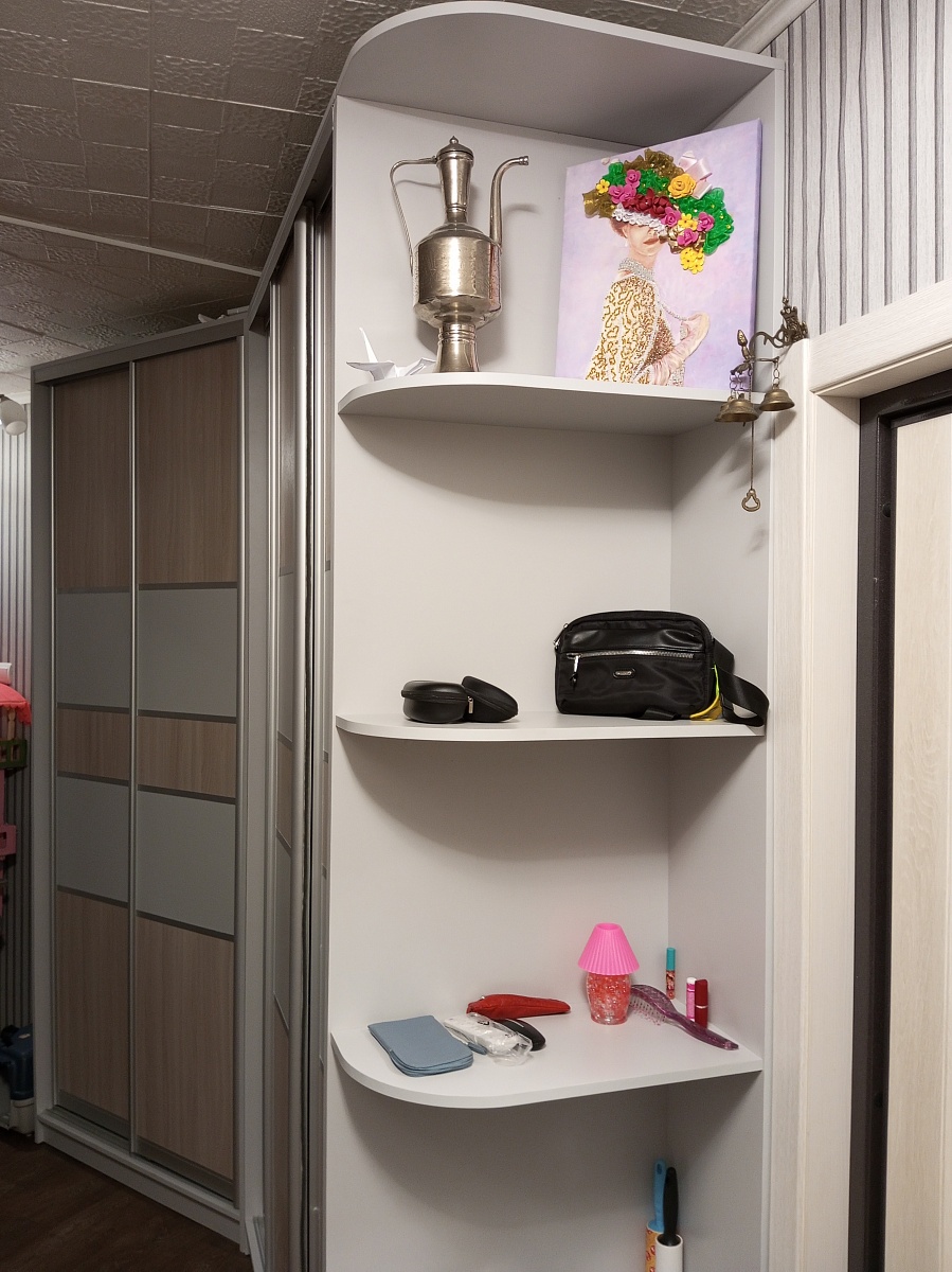 Заказывали шкаф Лагуна-30 вместе с Лагуны 3 в нестандартный коридор с изгибом (заказ 973969) по своим размерам, чтобы создать иллюзию единой прихожей. В нашем случае высота шкафа Лагуна-30 250 см, а ширина 60 см. К нему мы добавили угловую открытую секцию. Сам шкаф состоит из двух секций для одежды и верхней полки ( в нашем варианте). Сборку заказывали у компании-партнера. Быстрое выполнение заказа и доставка, качественная сборка и установка (не смотря на нестандартность)  порадовали. Качество медали этой фирмы очень нравится.
