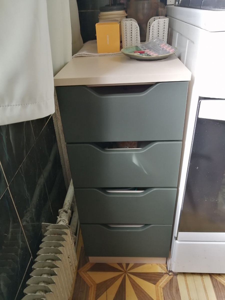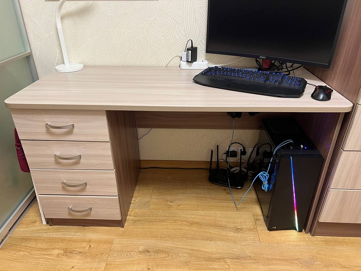 Заказ №443070. Заказывал данный стол вместе со шкафом во время ремонта в квартире, основное достоинство - возможность выбрать необходимые размеры изделия, чтобы оно максимально продуктивно вписалось в интерьер. Немного криво сделаны фасады ящиков, а в остальном всё отлично.