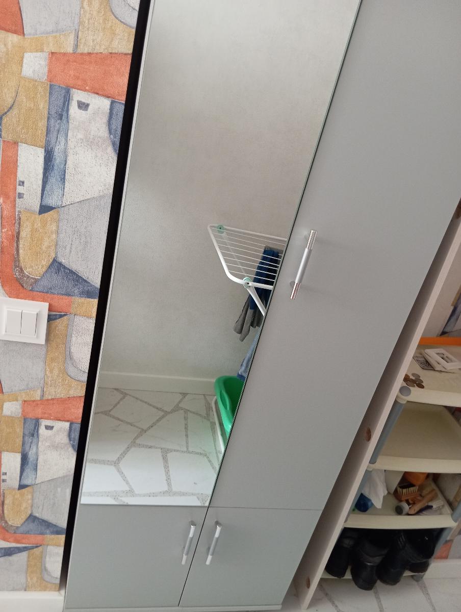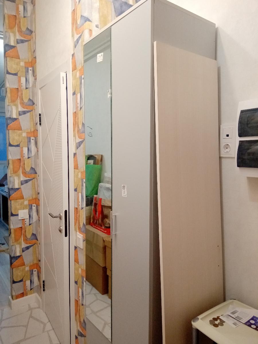 Заказ 00000569520. В узкий коридор мне нужен был шкаф глубиной 40 см. Очень удобно, что на сайте можно подобрать разные размеры, и что менеджеры перезванивают для уточнения деталей заказа. Специально для верхней одежды я брала выезжающую широкую перекладину, влезает 5-6 длинных пуховиков и зимних курток. Плюс внутри шкафа полка для головных уборов. Серый цвет выглядит просто, без изысков. Зеркало очень вписалось в интерьер, не занимает места на стене. Я довольна возможностью подобрать нестандарт!