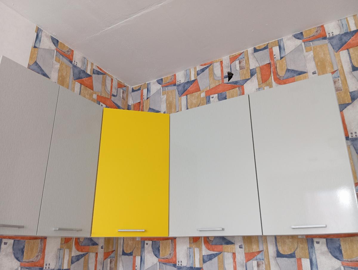 Заказ 00000569325. Кухня очень удобная. Мне нужно было особое расположение шкафов, хорошо, что менеджер перезвонил и уточнил все детали заказа. Я специально брала цвет "белый дождь" - он струится при свете дня, выглядит воздушно. Жаль, что больше не производят "желтый глянец" и сотрудник в шоу-руме не знает об этом, пришлось брать матовую "желтую шагрень". Если нужны нестандартные решения, то здесь очень удобно выбирать в фильтре разные варианты.