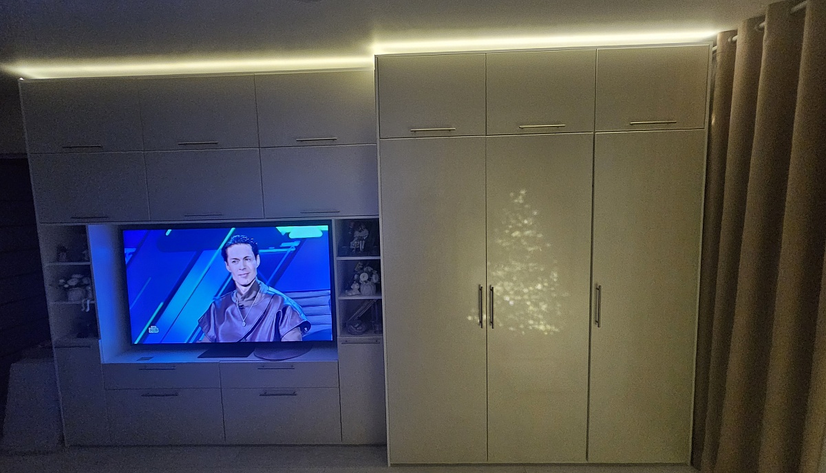 Стенкой довольны. Вместительная, красивая. Собирали сами. Были небольшие проблемы с регулированием ящиков и поменяли петли на одной двери шкафа Но в целом классная мебель.Спасибо!