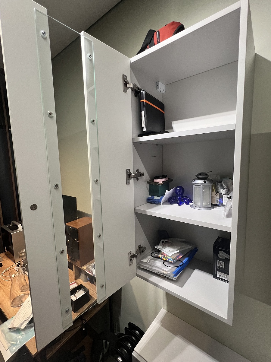 Уже давно магазин стал моим любимым на рынке мебели. Хорошее качество материалов и фурнитуры, возможность изменять размеры и функционал. Доброжелательные менеджеры(и терпеливые) учитывают все пожелания по изменениям параметров. К этой тумбе присматривалась давно, изменяя размеры и функционал под свои потребности. В итоге уместила для бережного хранения свои  работы и материалы для рукоделия. Единственное с чем не угадала-это стекло. Не думала,что будет так трудно подобрать плёнку под интерьер, надо было фасады делать не стеклянными или хотябы не прозрачными.