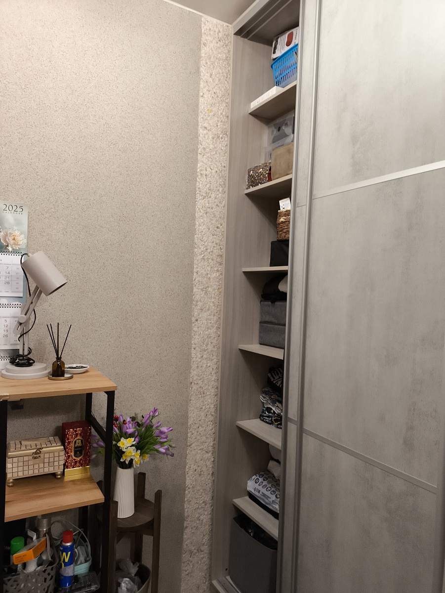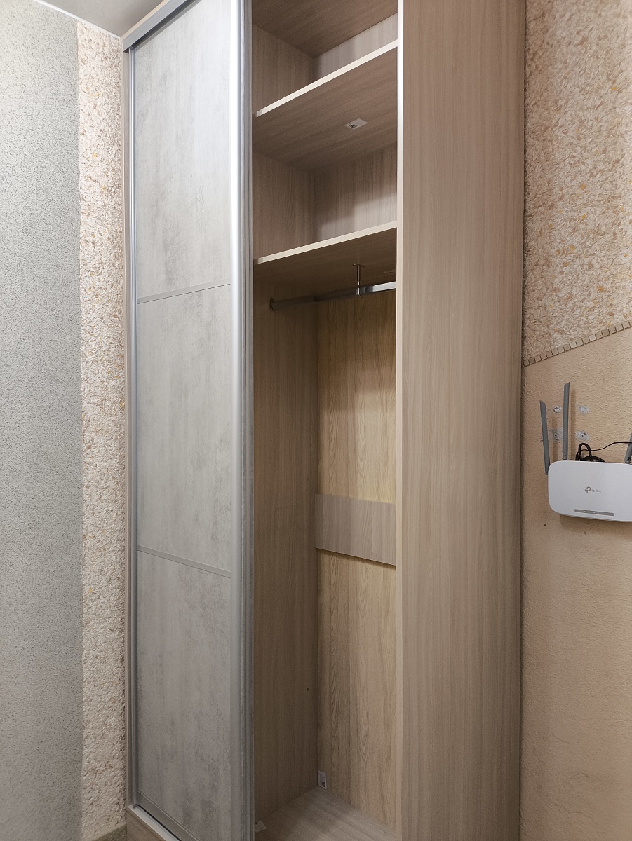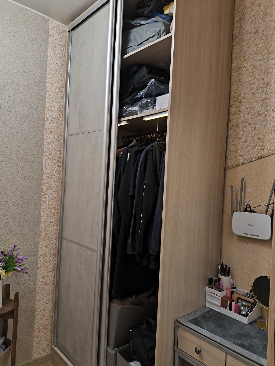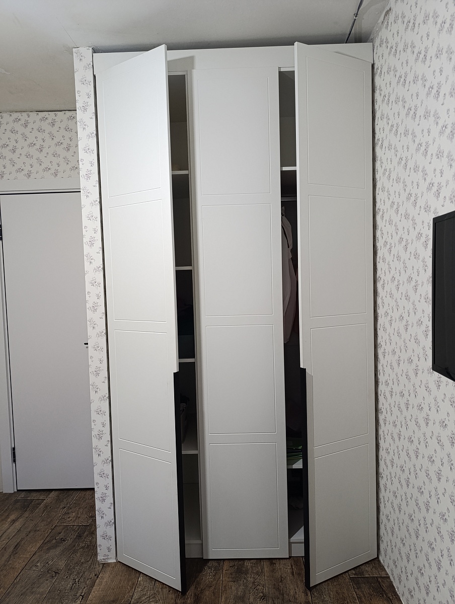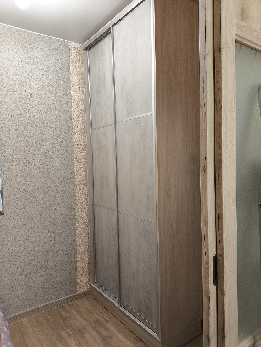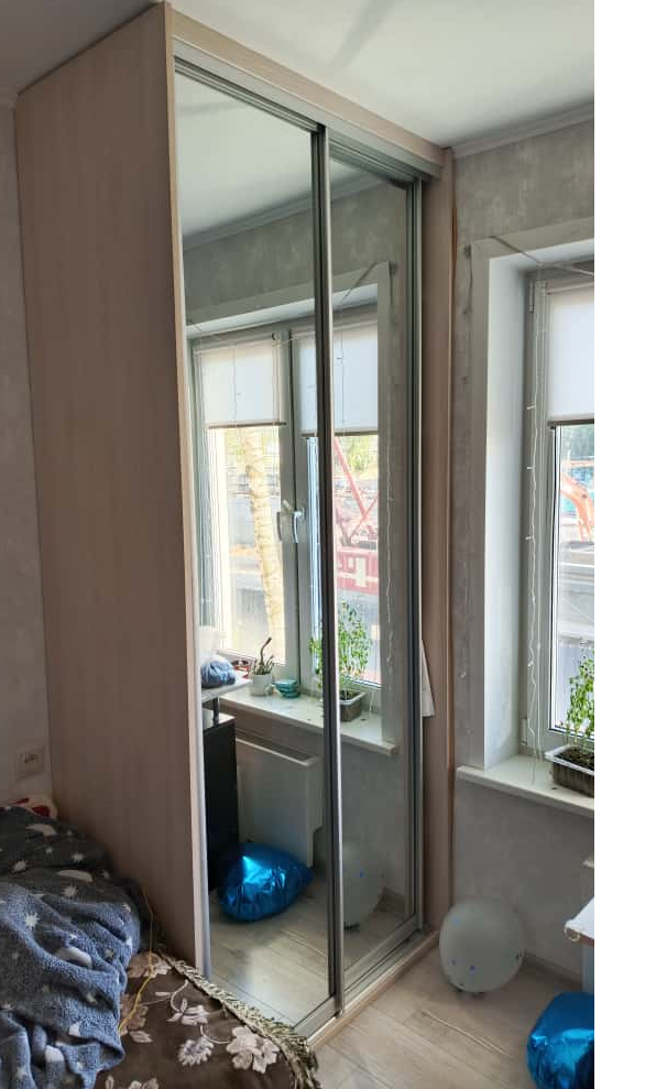 Заказ 00000531079, изделие Двери-купе Глейз 1 BMS (1000х2400х34)Шкаф делали сами по своим размерам, заполняя имеющийся угол. Надо было подобрать двери, чтобы идеально вписались в заданный проем, и чтобы было бюджетно. Все получилось:  Двери-купе Глейз 1 BMS отличные, по размерам все идеально получилось подобрать. Наверно, только этот продавец и предлагает такую гибкую размерную сетку по приемлемым ценам. Сами двери добротные.