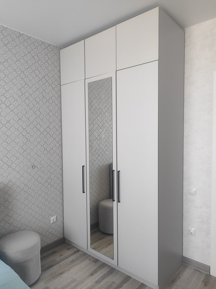 Шкаф порадовал, смотрится солидно. Есть возможность по своему усмотрению изменить конфигурацию: добавили зеркало и дополнительные полки, изменили ручки, изменили размеры. Думали будут проблемы из-за сборки в стеснённых условиях, но мастер за 3 часа все собрал на отлично. Заказ 00000133736