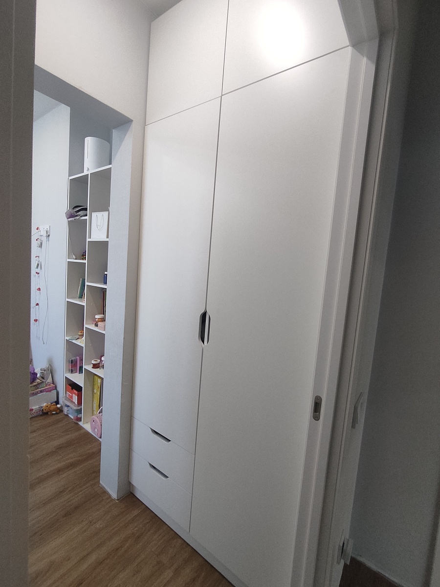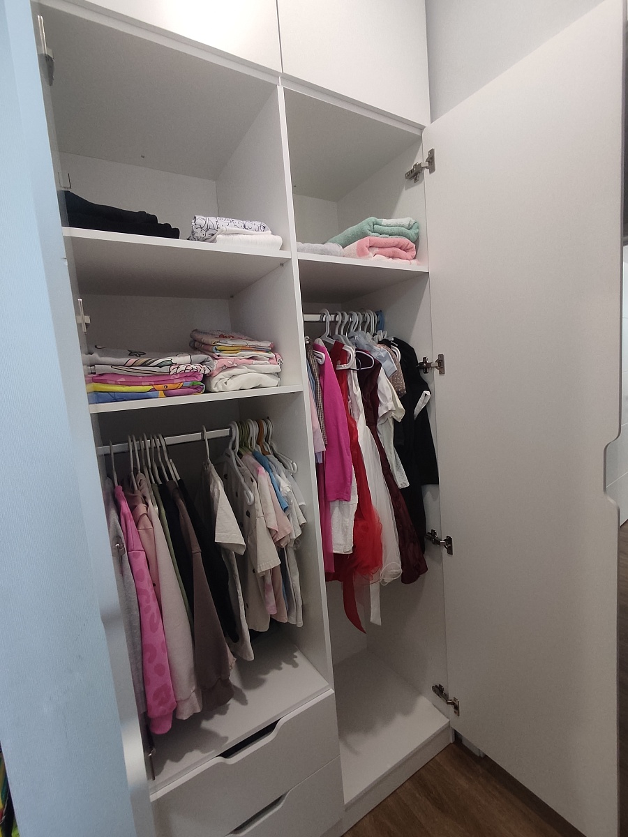 Заказ 00000108675, изделие ЭСКИЗ №00000108675 Шкаф распашной Вильхаттен Vilhatten 1 (1000х2080х500)Заказала данный шкаф в детскую комнату для дочери 6 лет. Пришло все быстро, отлично упаковано, собирается легко, качество материалов на высоте! Безумно порадовал заказ по необходимым нам размерам! Идеального вписался в нишу. Мы немного изменили внутреннее наполнение для удобства ребёнка, по мере роста будем менять высоту штанги. Поместились все вещи ребёнка и осталось много свободного места на будущее!