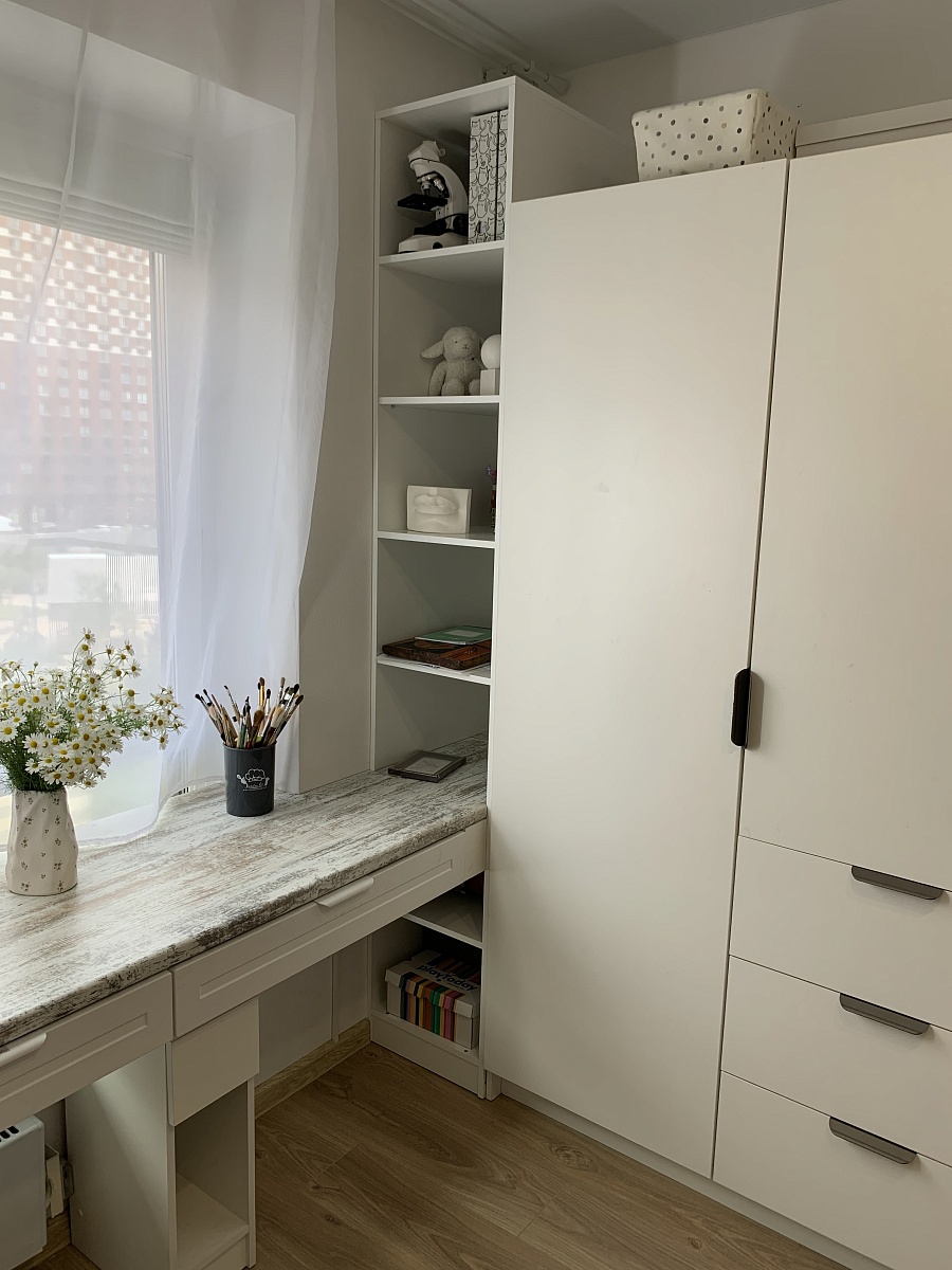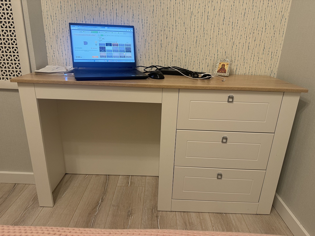 Столик долго выбирала , сделали по индивидуальным размерам (1400/75/40гл) столешницу выбрала другого цвета (дуб Сонома) классно смотрится. Корпусг белый, фасады мдв шагрень. Девушка консультант (вроде Полина) скинула фото сочетания помогла определиться с цветом. Спасибо ей большое , результатом довольна. Муж собрал сам, пришлось повозиться (схема сборки конечно никак икеа, но рукастый соберет )